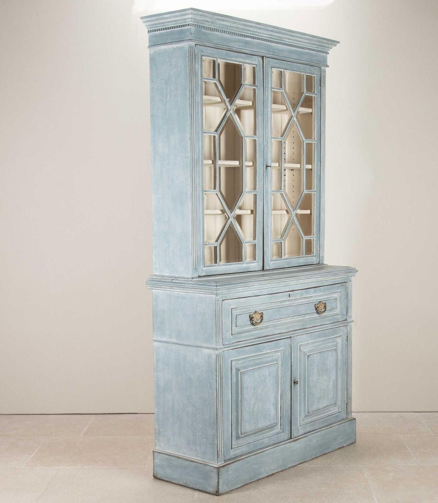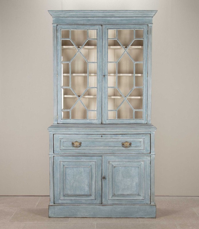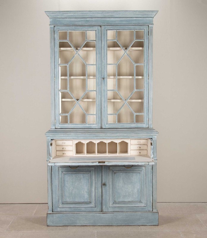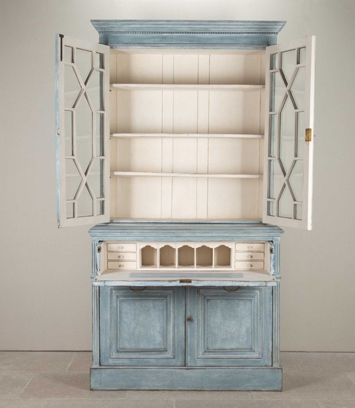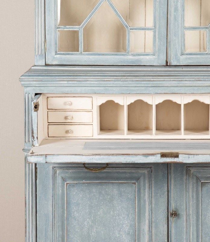 Early 20Th Century English Painted Bookcase Secretaire