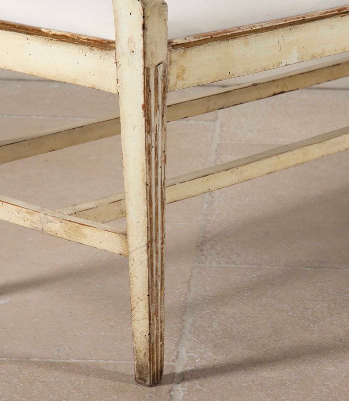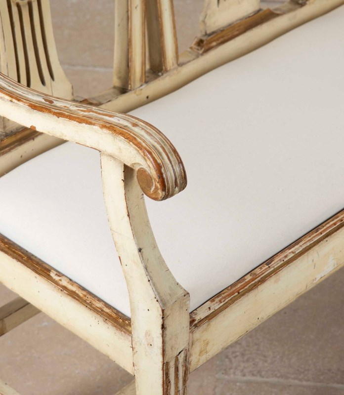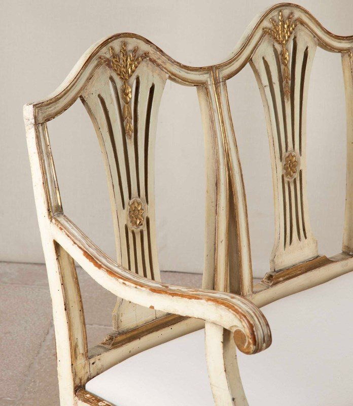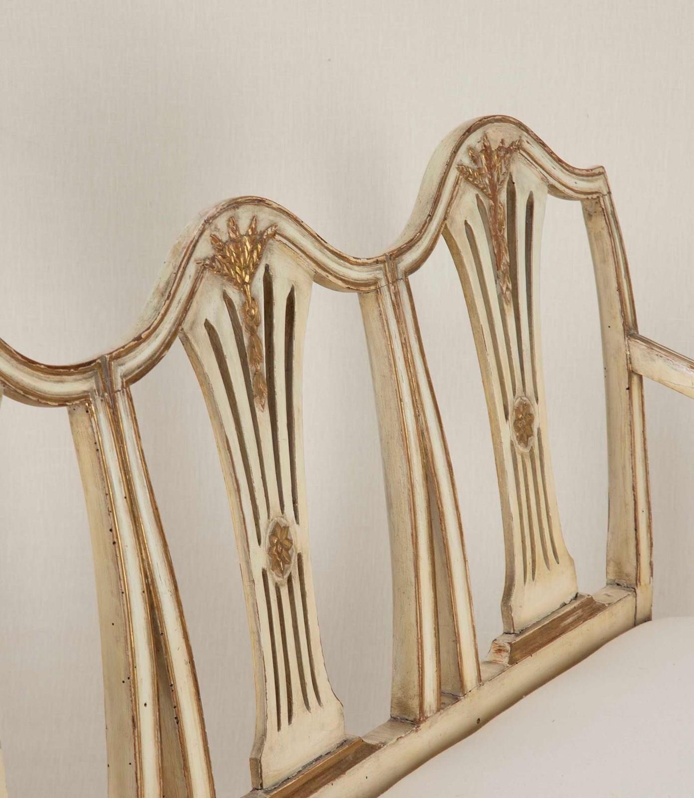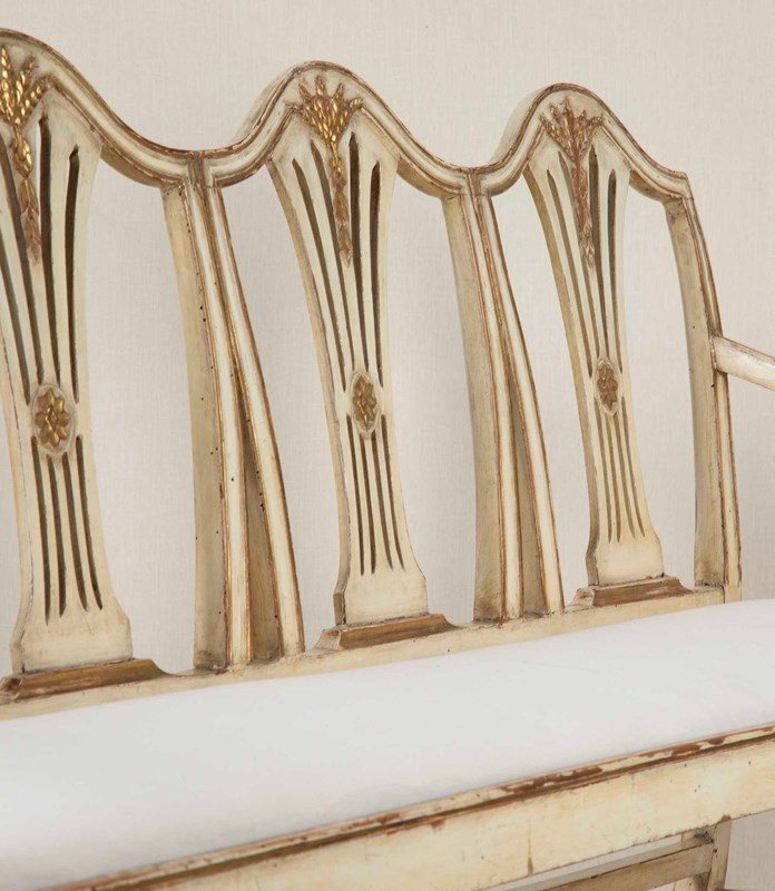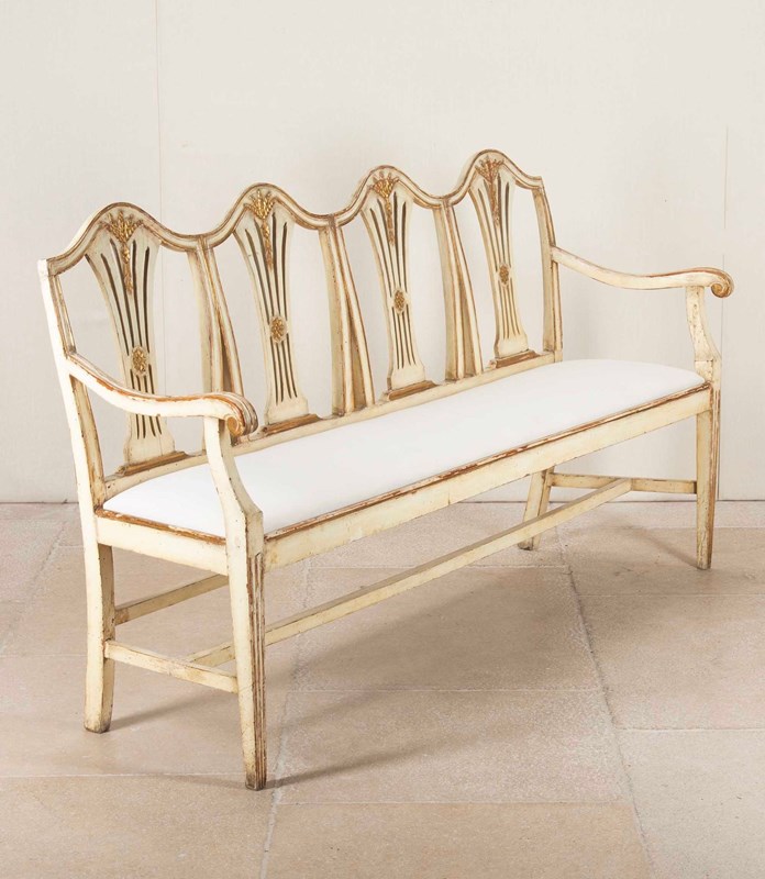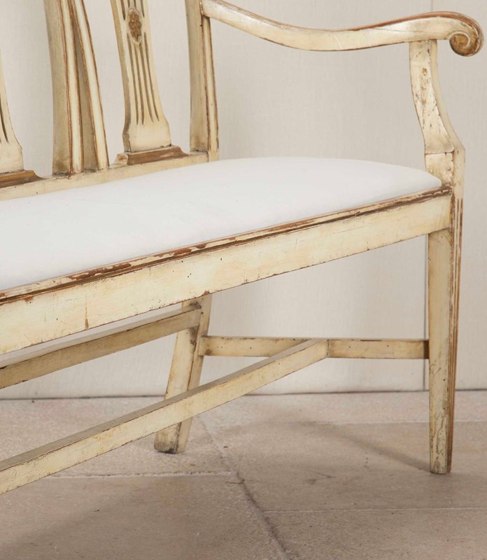 A delightful George III English Hepplewhite style chair back hall sofa or bench.