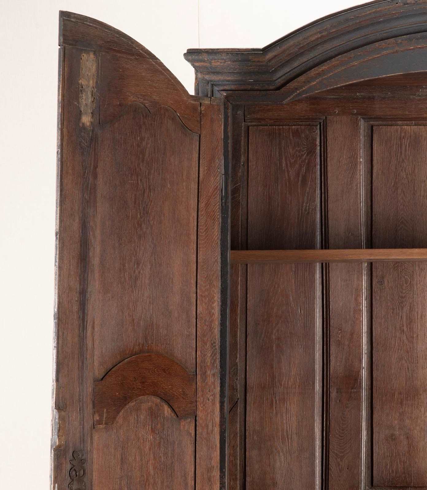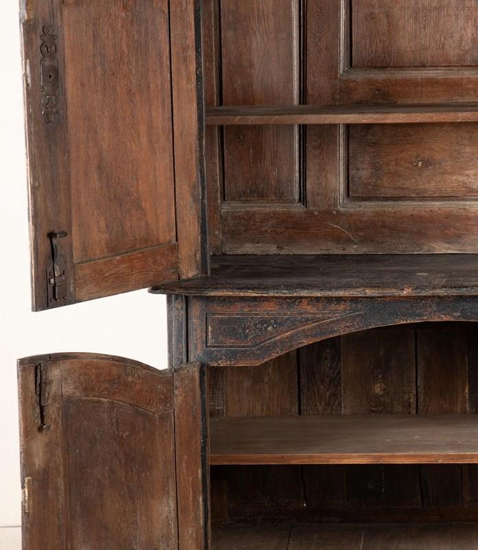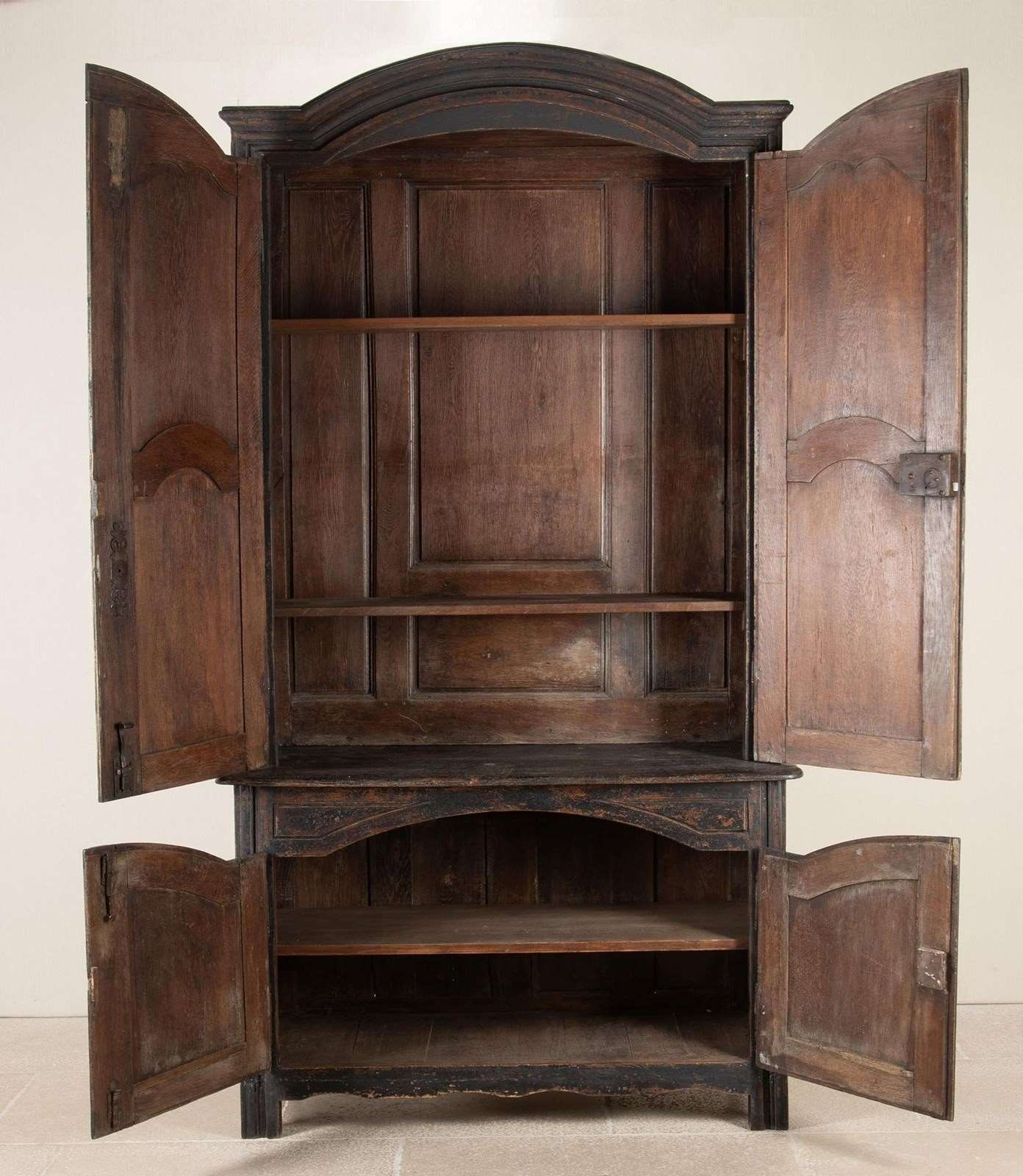 Shelved with a wonderful top interior. Comes in two parts, top and bottom, for ease of placement. Circa 1780.