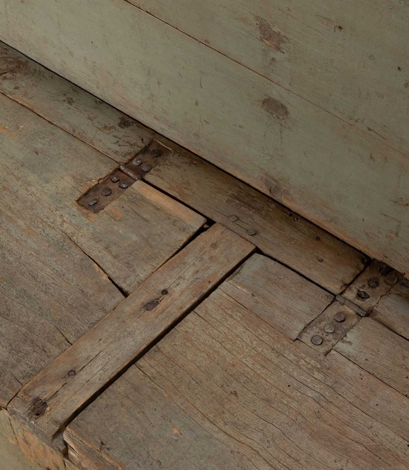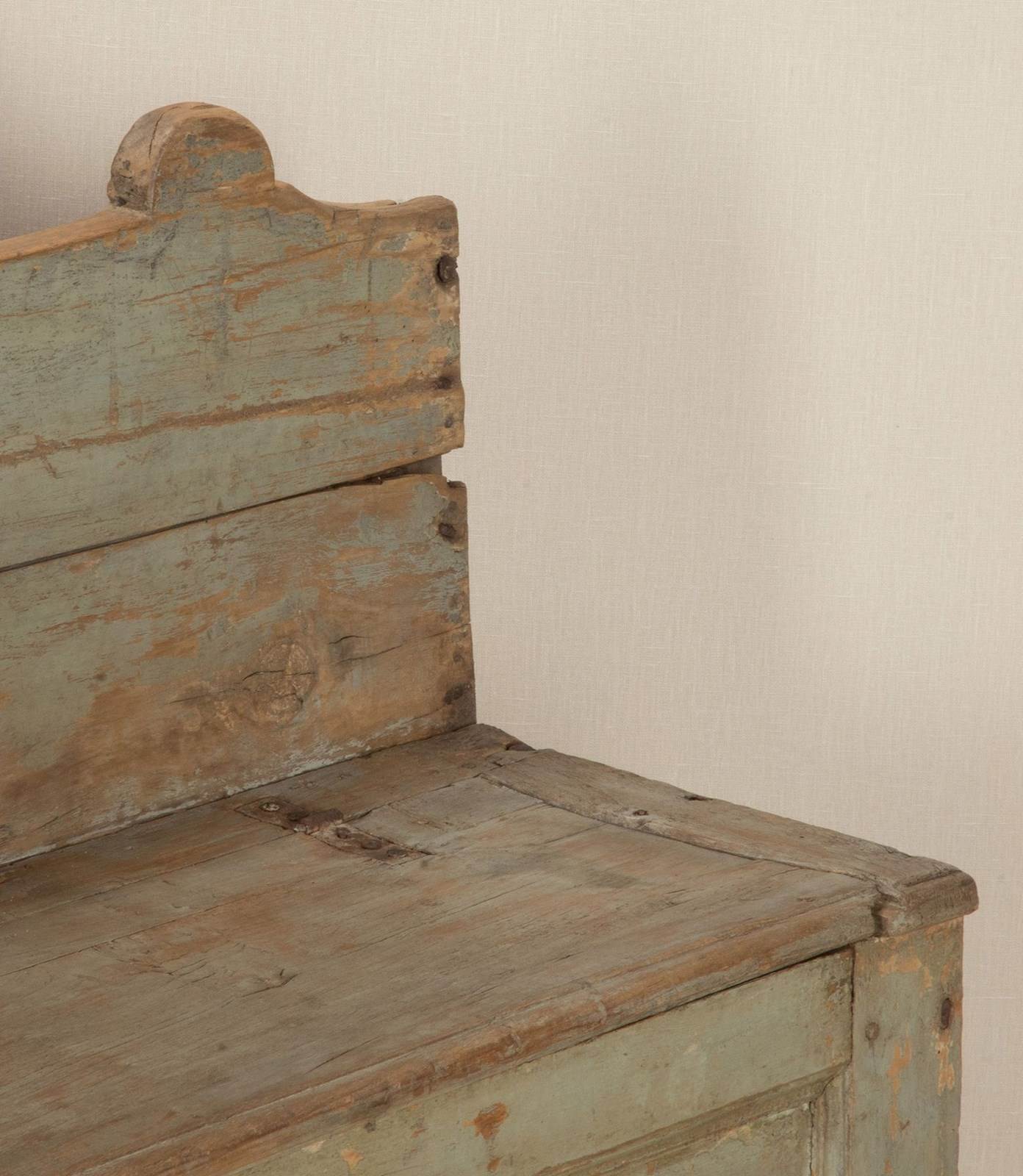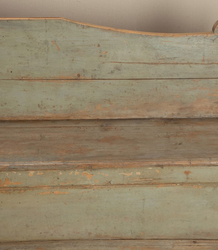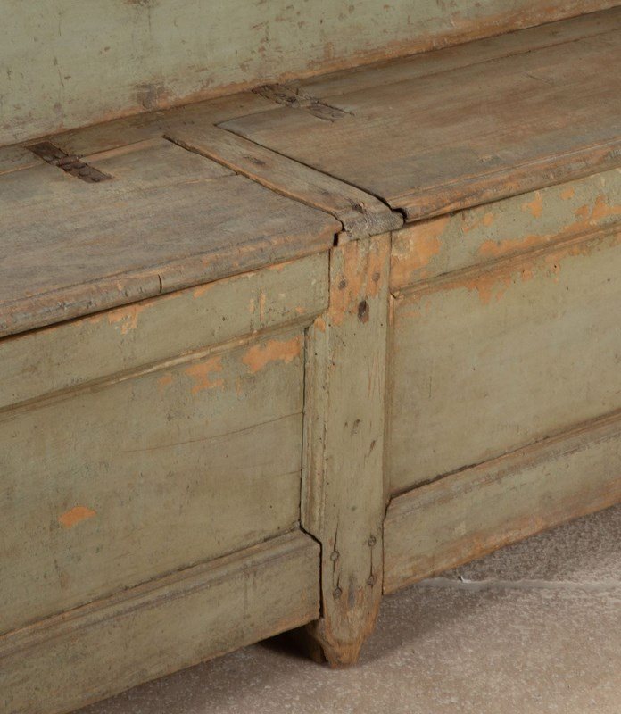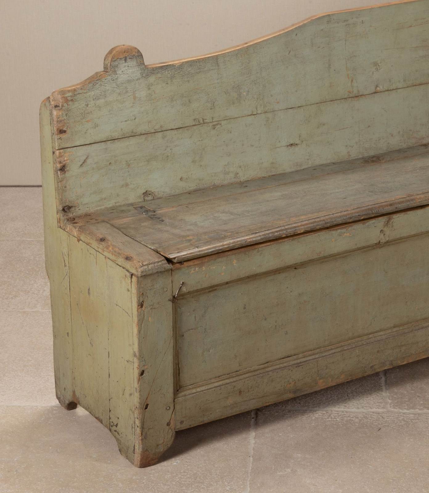 Late 18th Century Italian bench or seat with original painted pastel pale grey patina. With two hinged seats for storage.