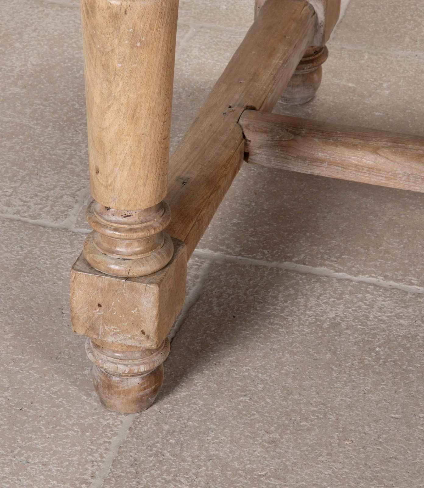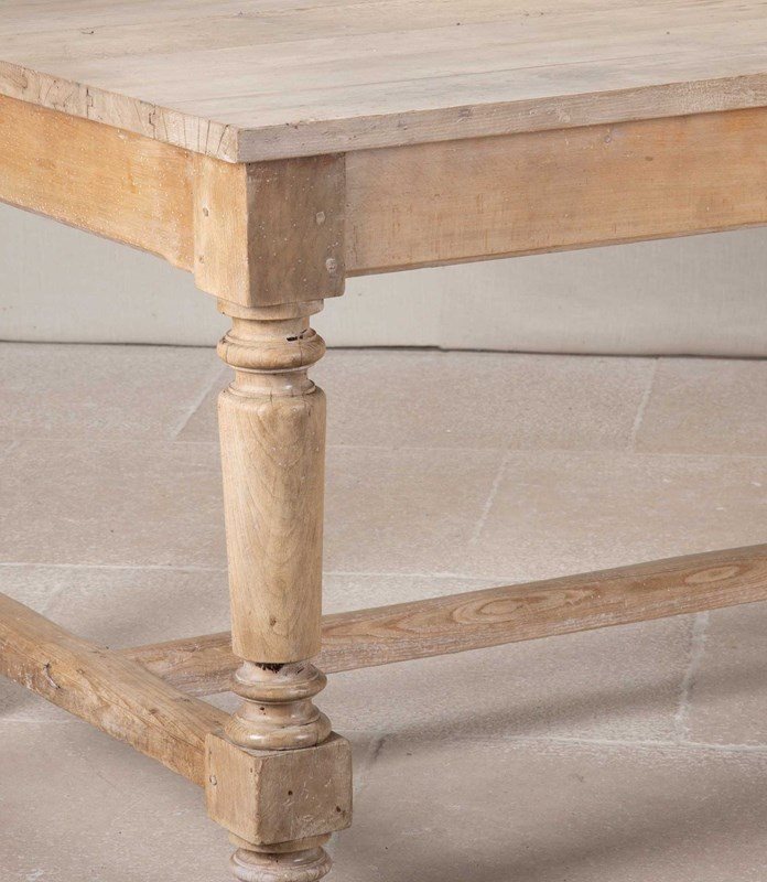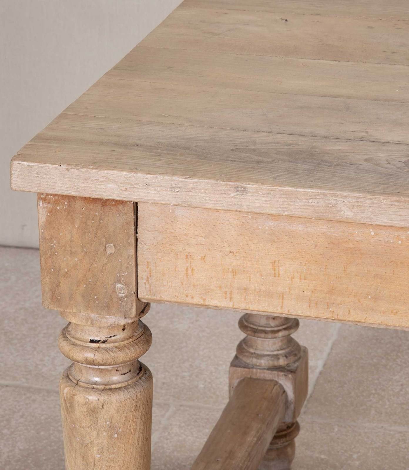 Large late 19th Century English farmhouse kitchen scrubbed top beech table. With classic turned legs and H stretcher refectory base.