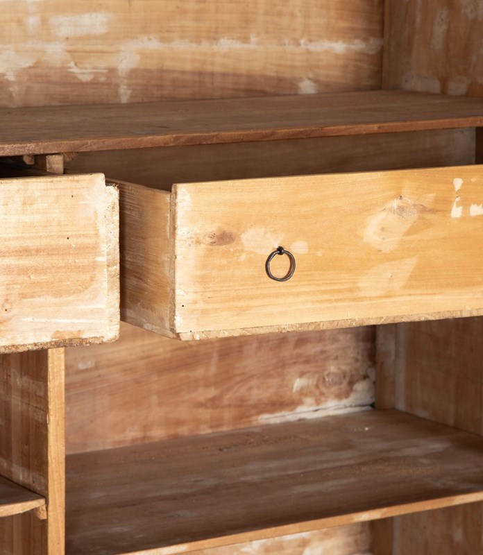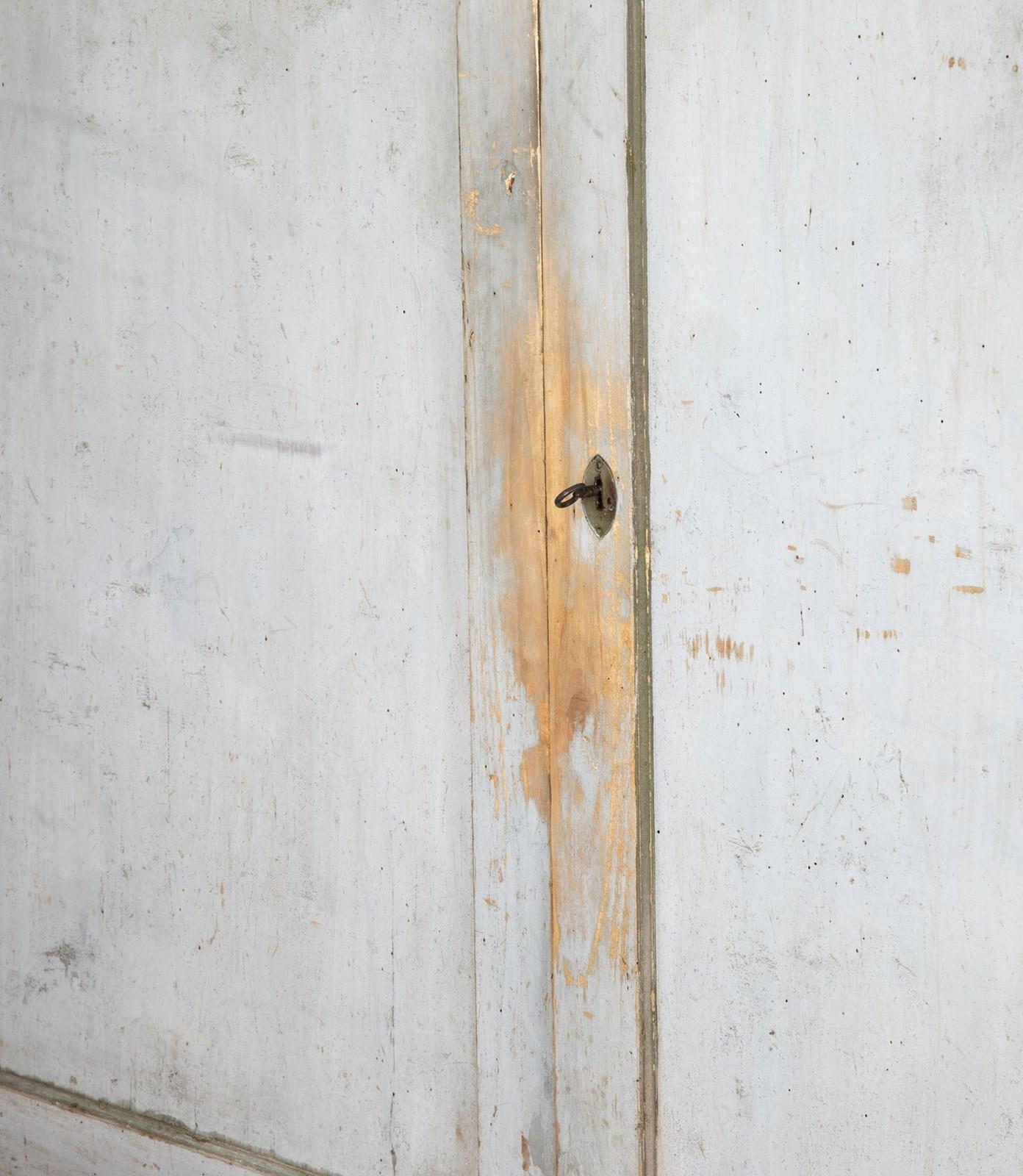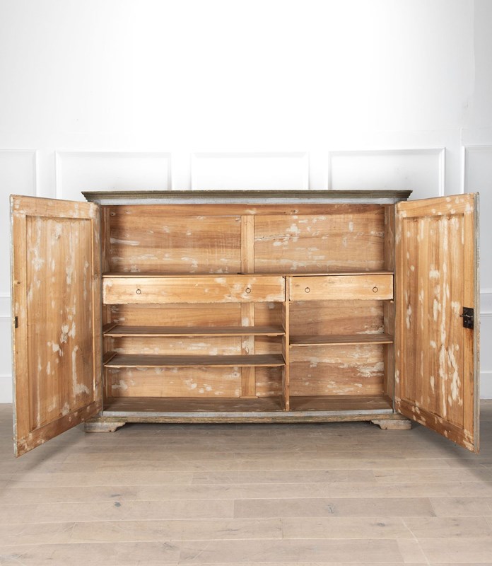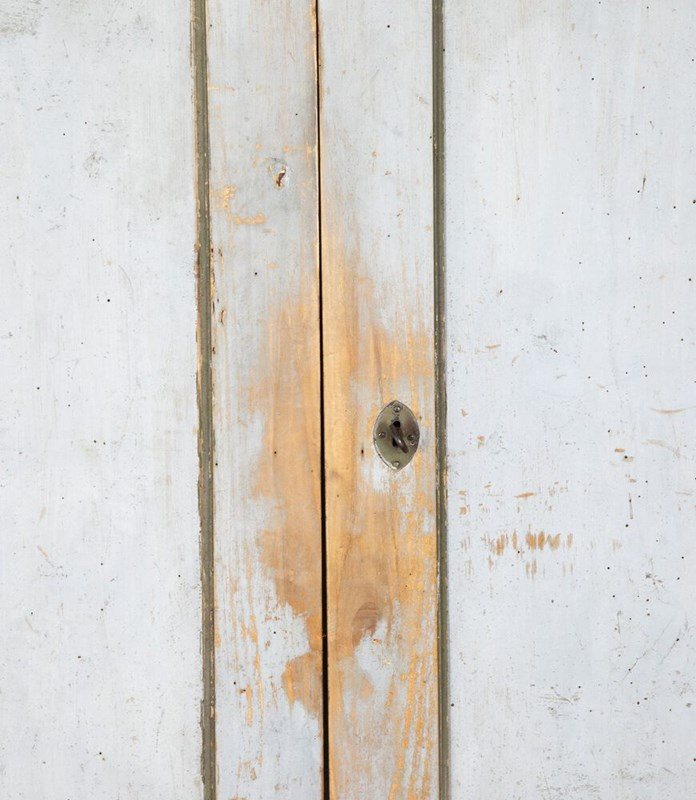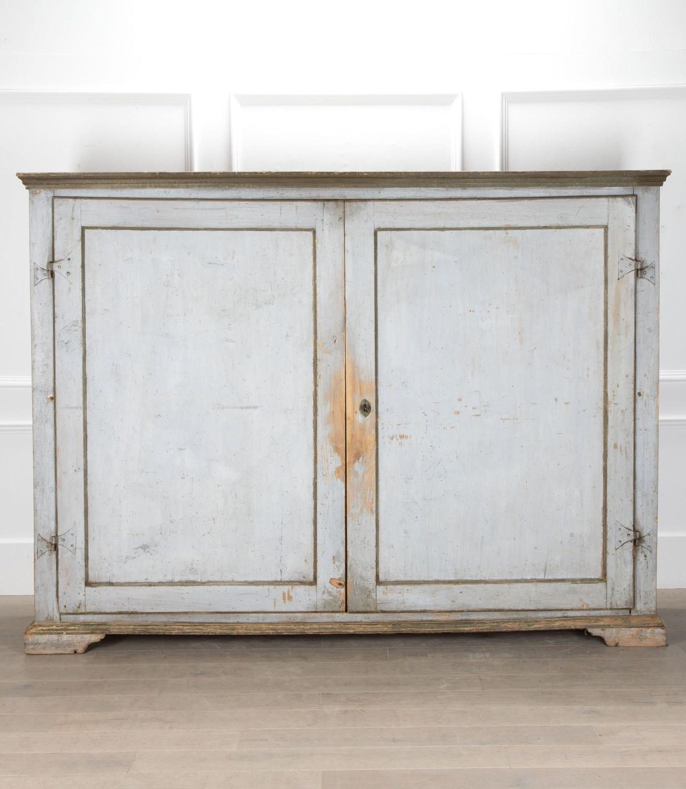 Retaining much of its original paint, the cupboard has an unusual configuration of only two doors across its near two-and-a-half metre width!