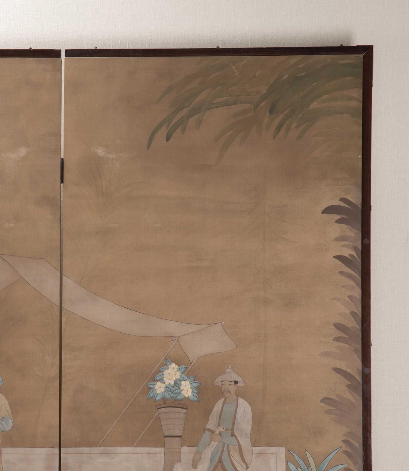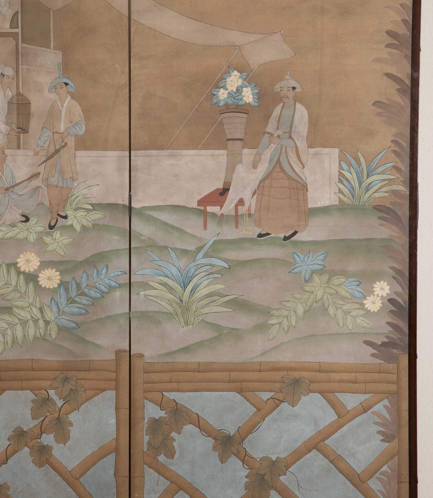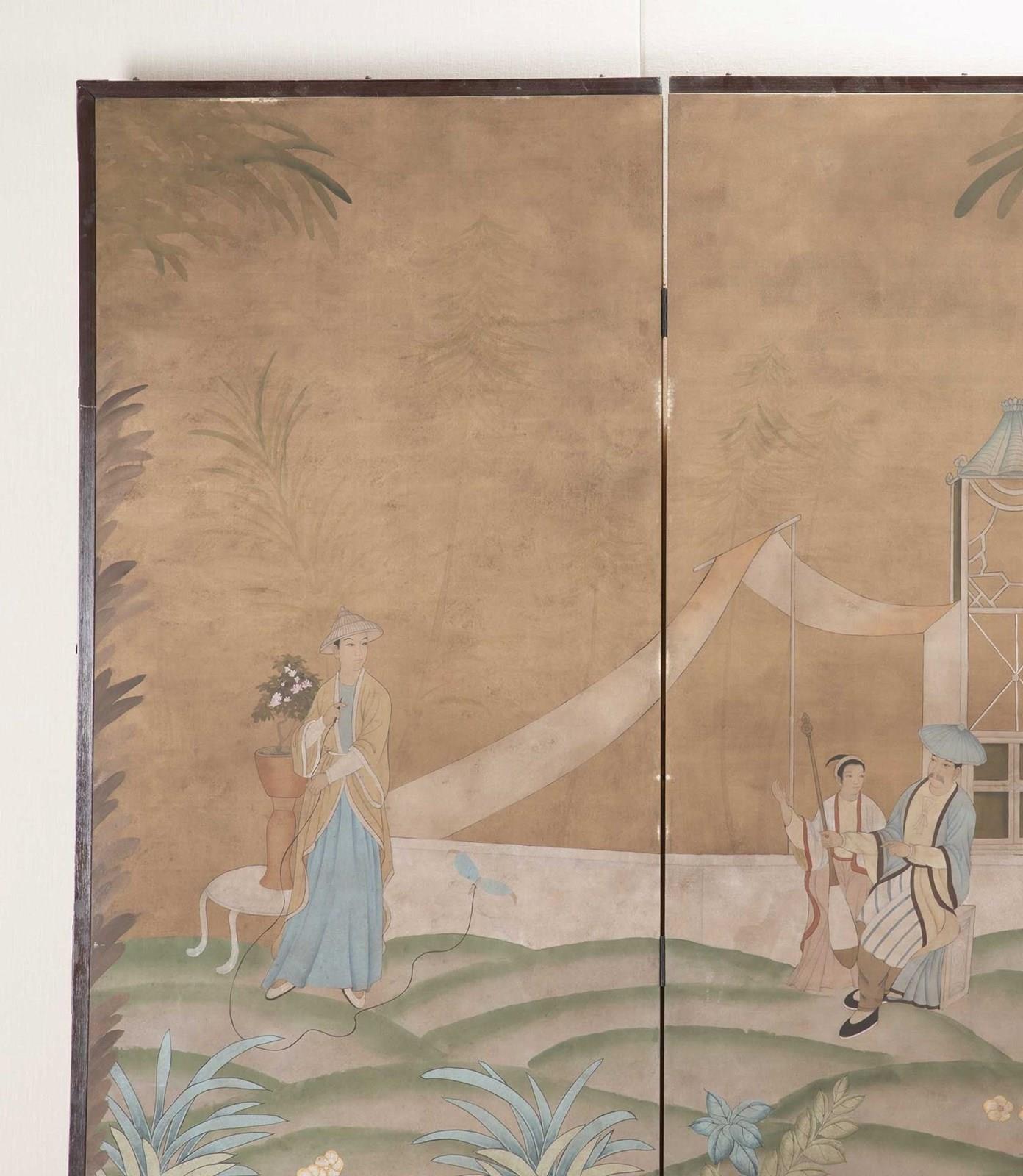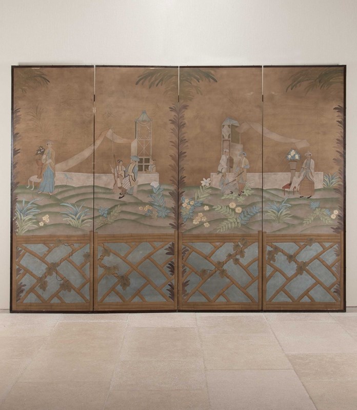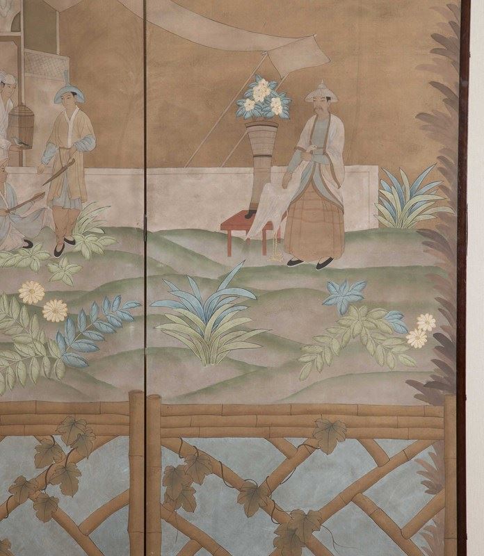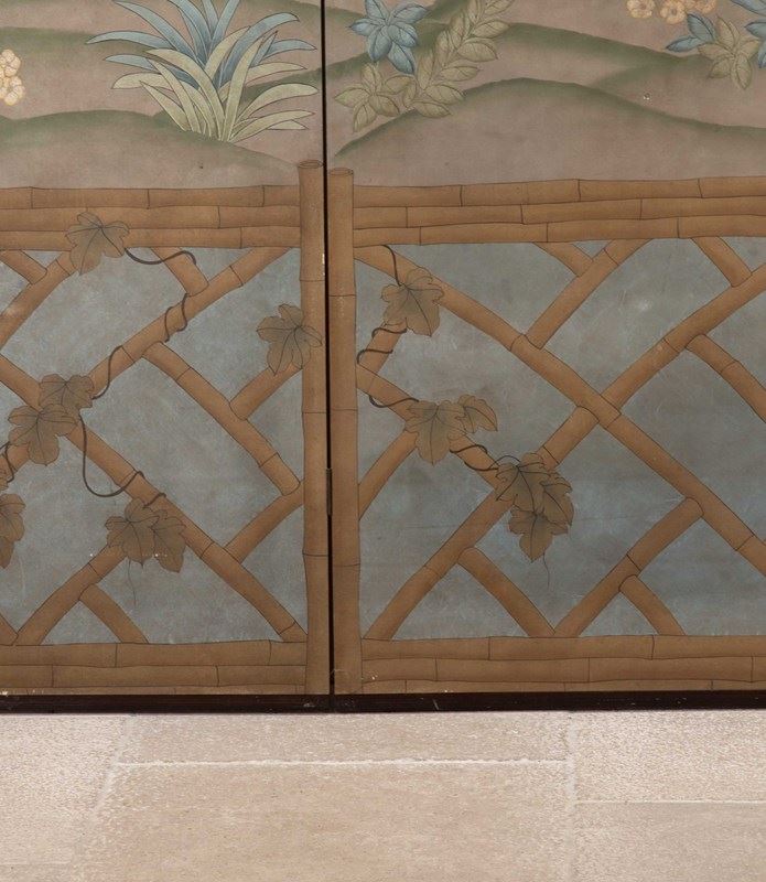 Large Early 20Th Century French Painted Chinoiserie Screen