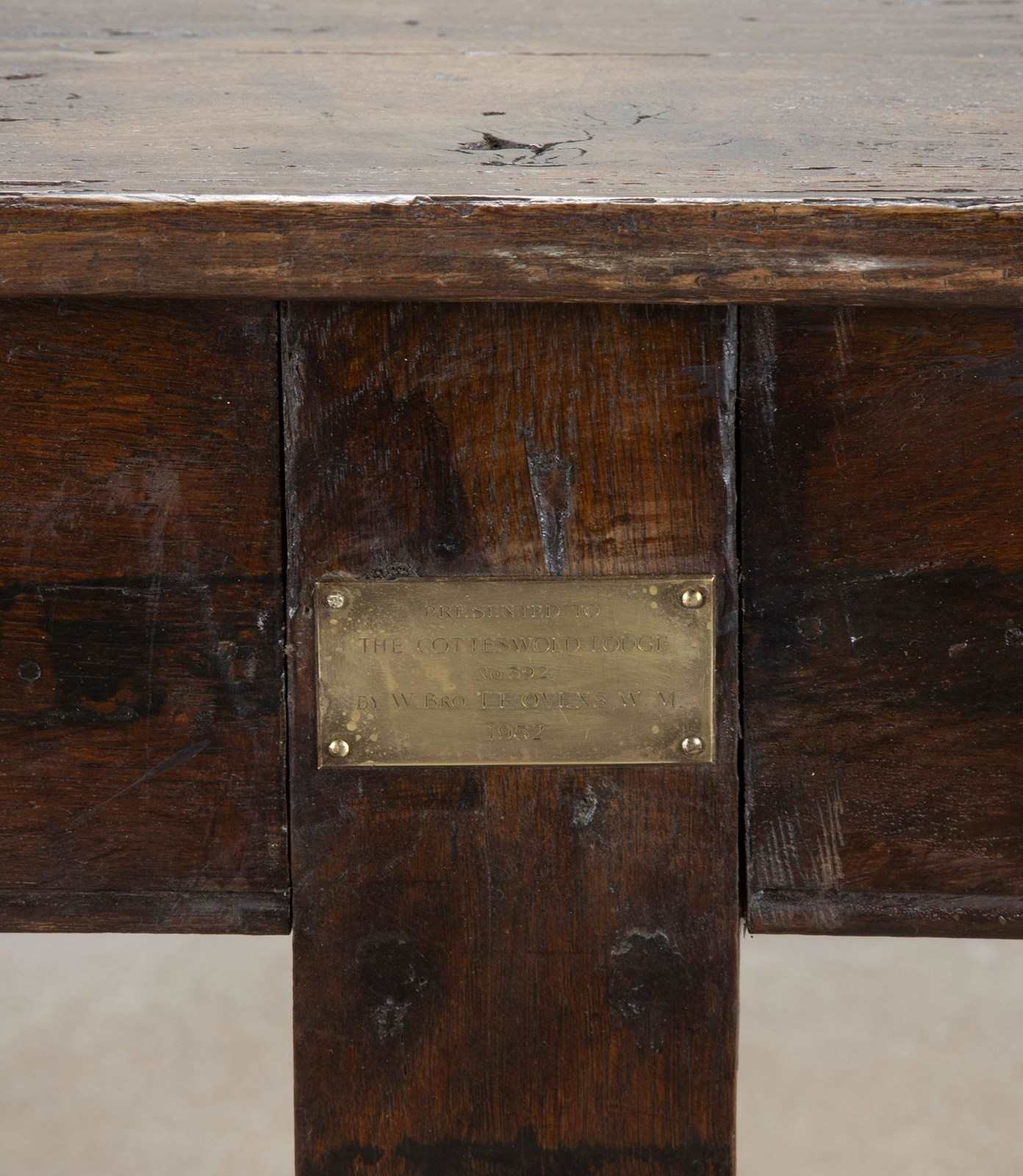 Much later brass presentation plaque to 'Cotteswold Masonic Lodge' (The provincial grand lodge of Gloucestershire, No 592, Cirencester), in 1952.