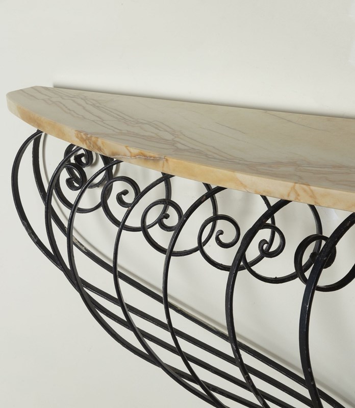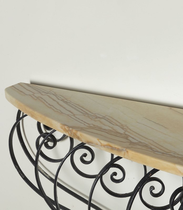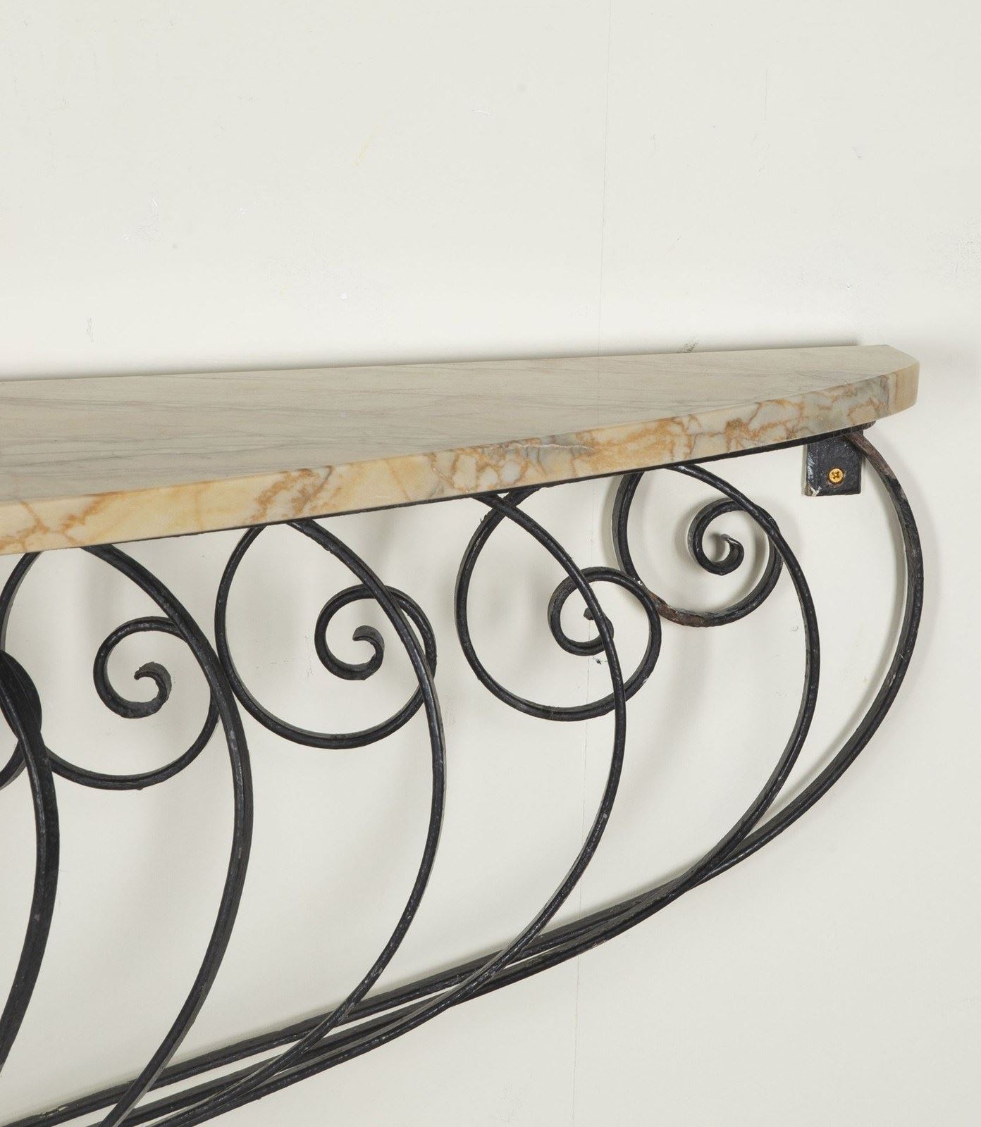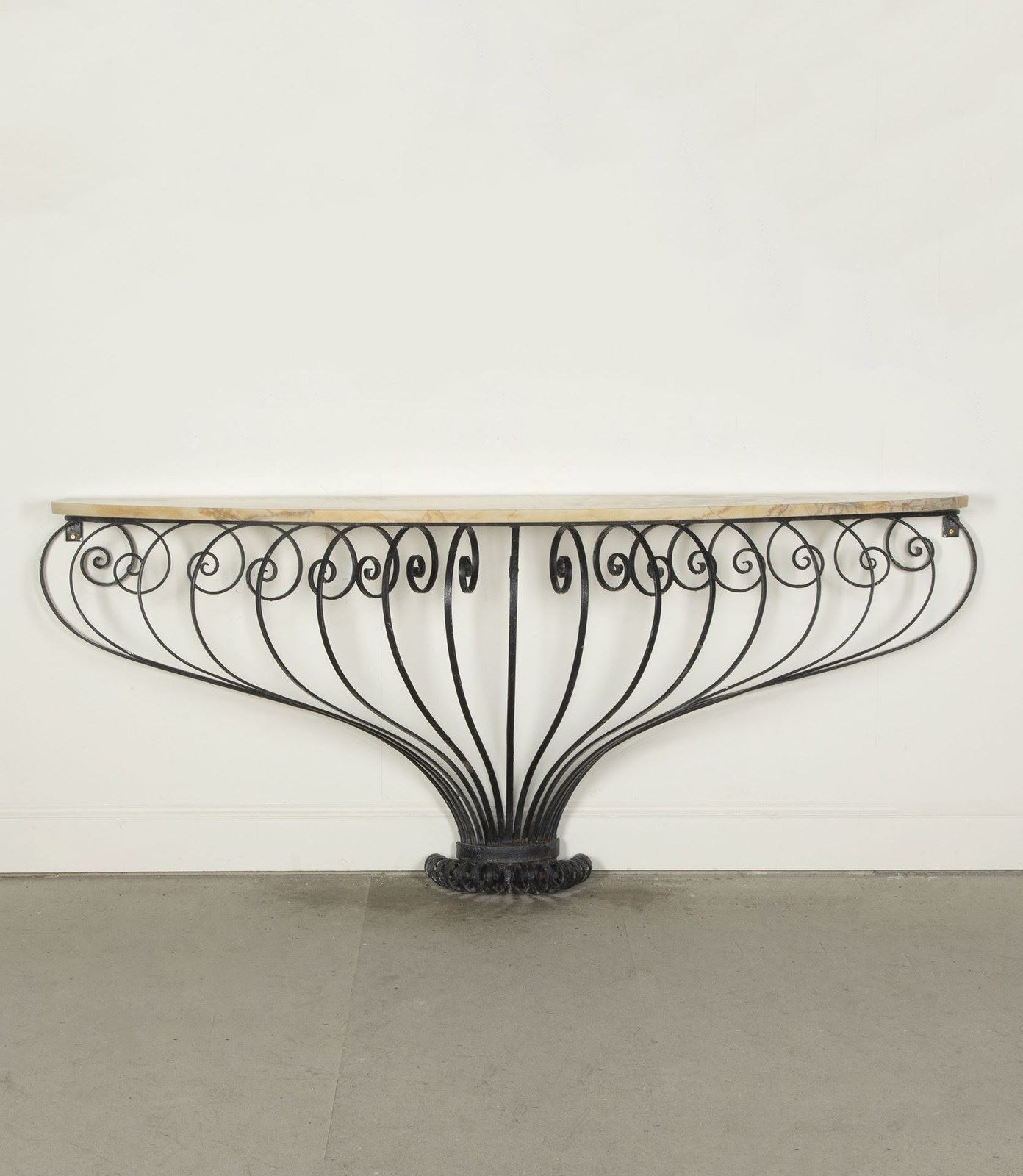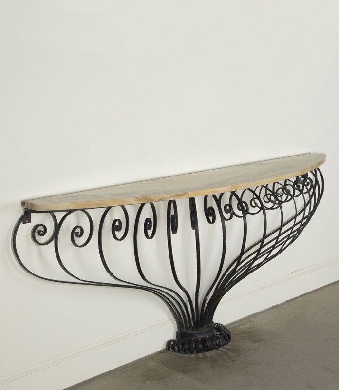 Large Late 19Th Century Italian Wrought Iron And Marble Console Table