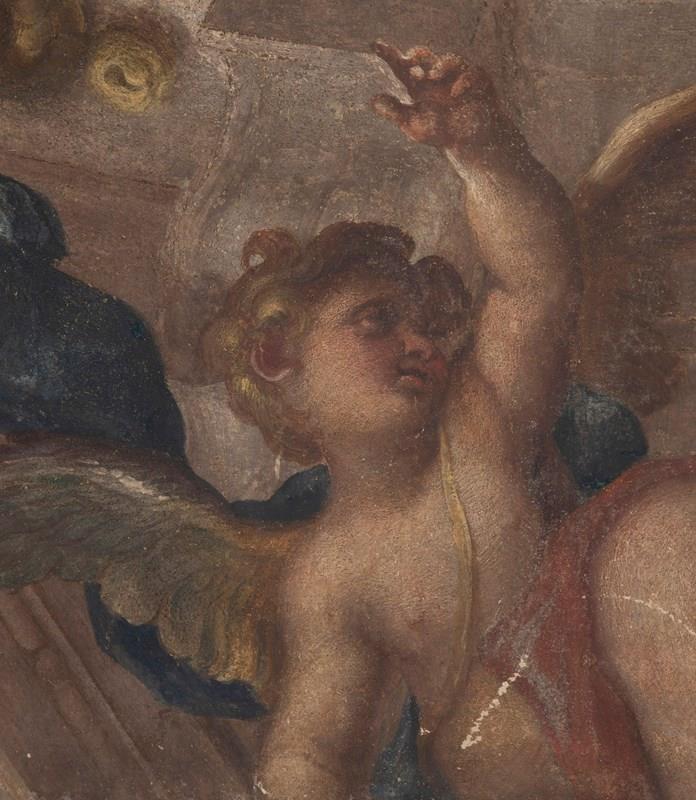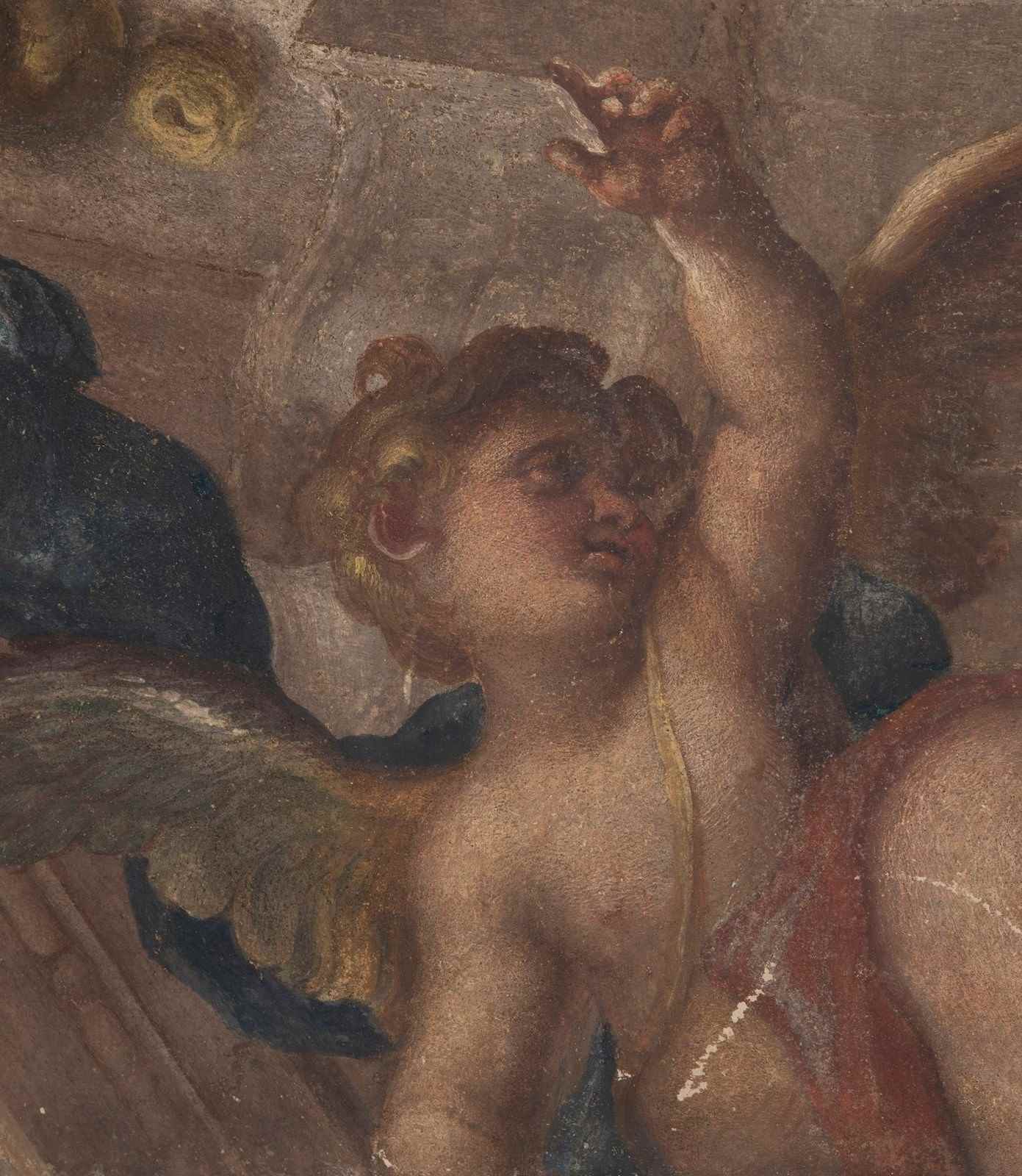 A compelling late 17th Century Genoese fresco fragment attributed to Domenico Piola (1627–1703) or his workshop.