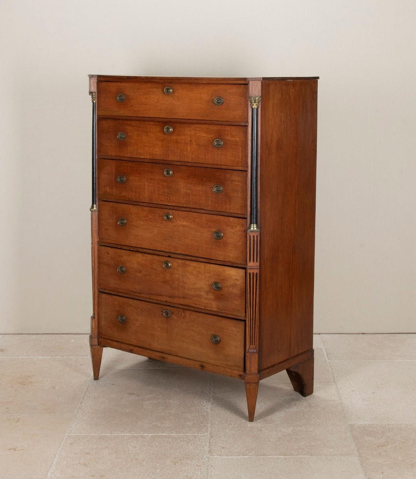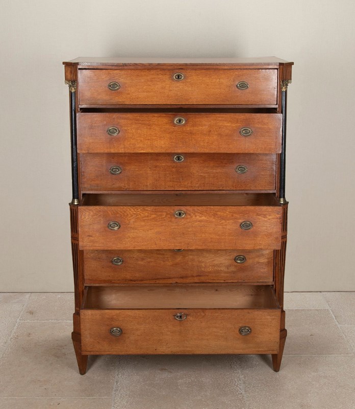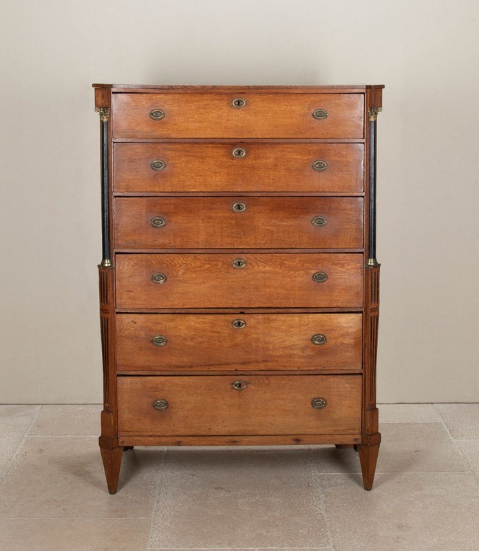 An unusual late 18th Century Dutch Empire oak tallboy commode.