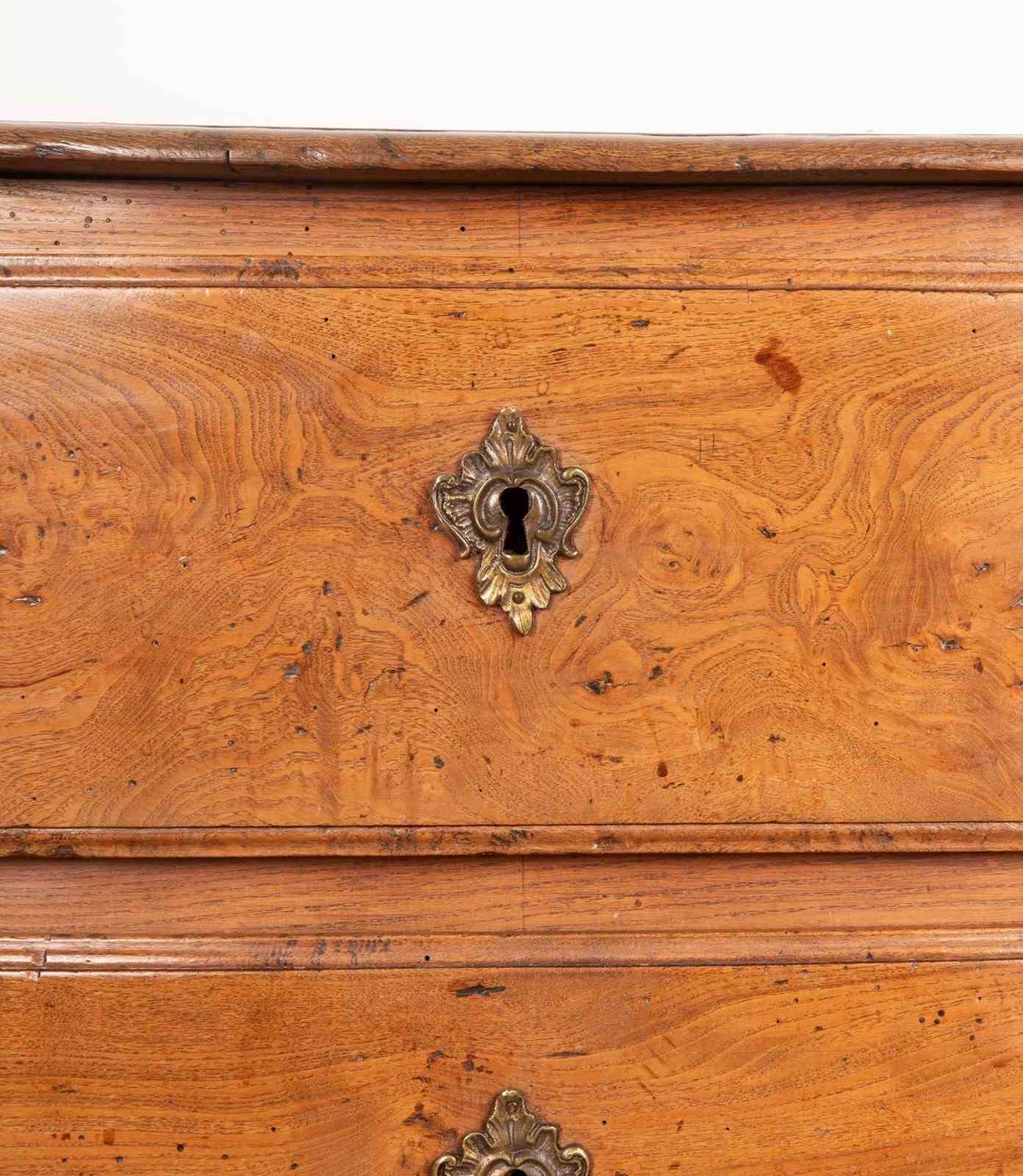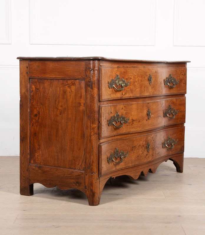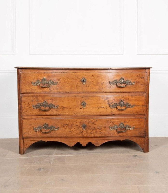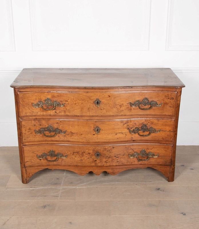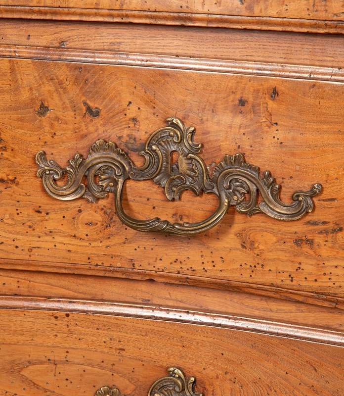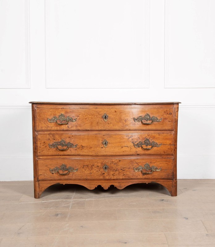 In a wonderfully figured cherry-wood of exceptional colour. Original hardware.