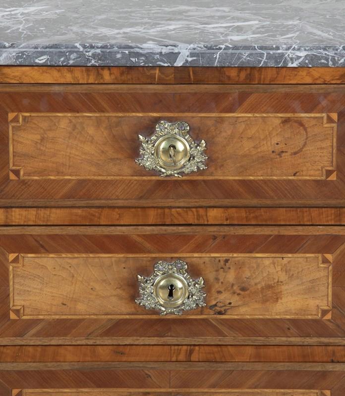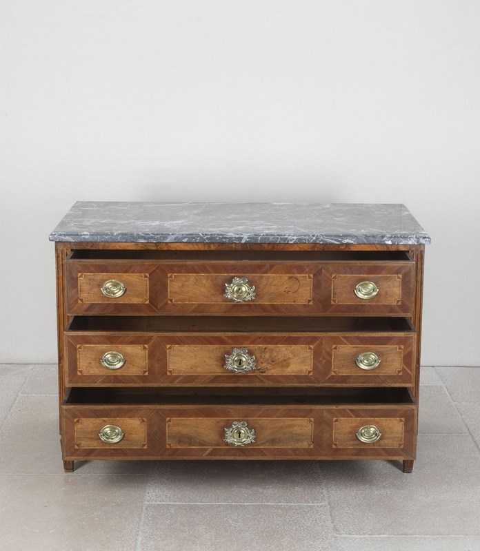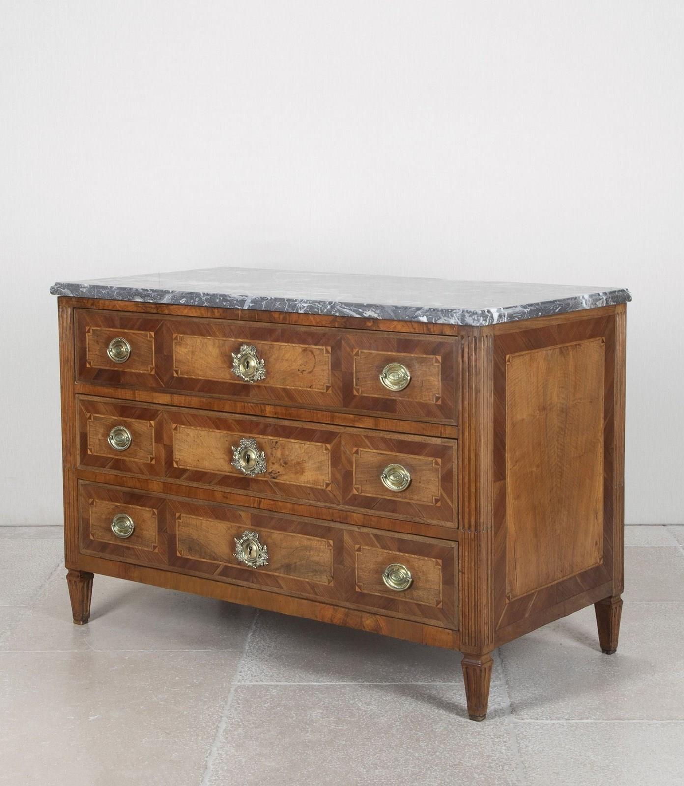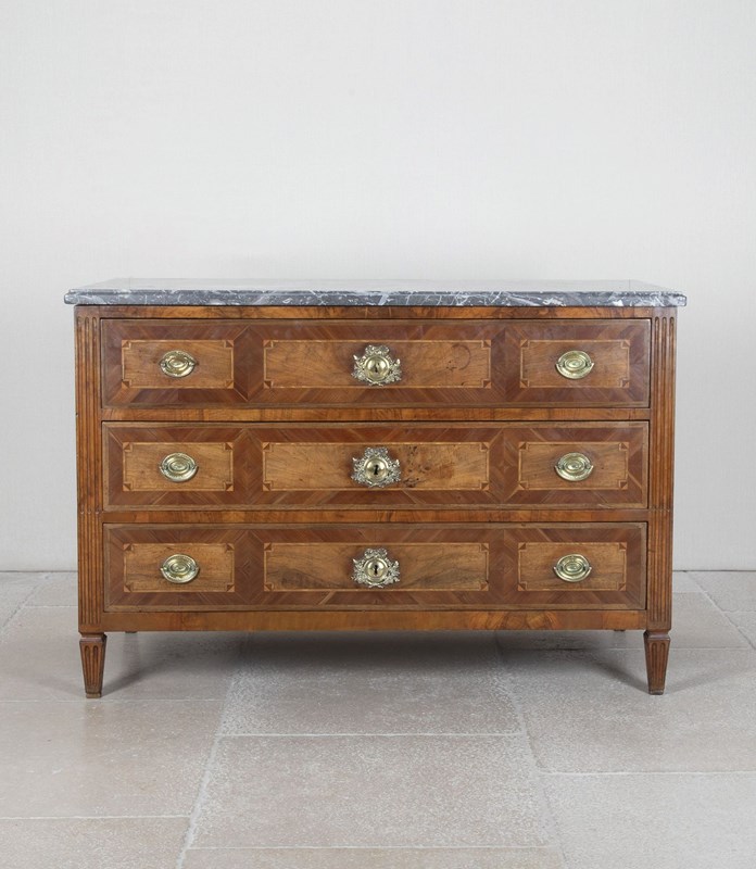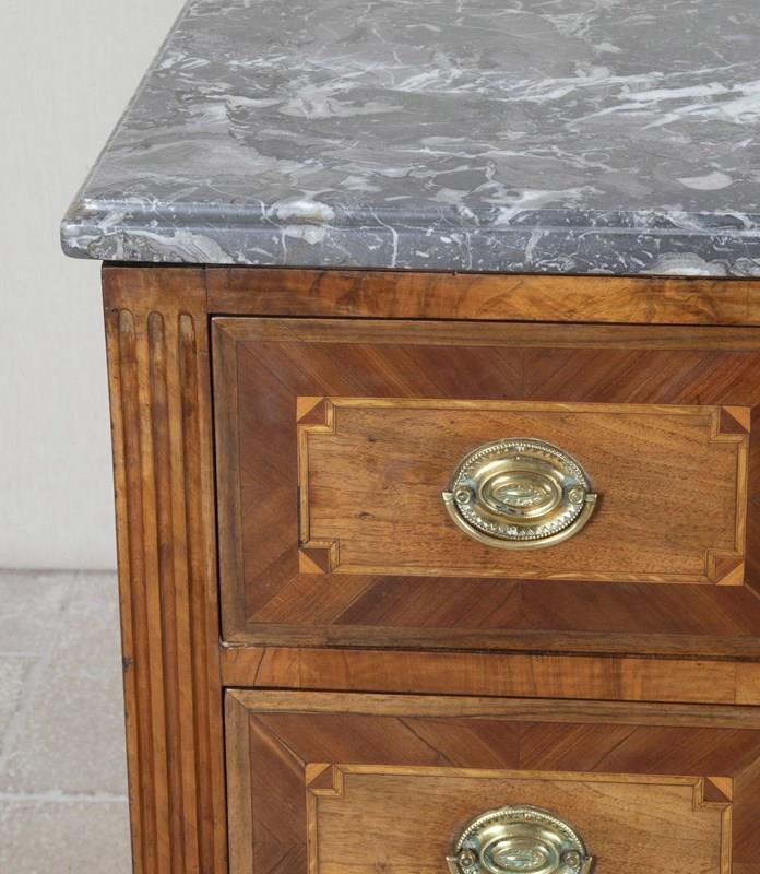 Late 18Th Century French Louis XVI Marble Top Marquetry Commode