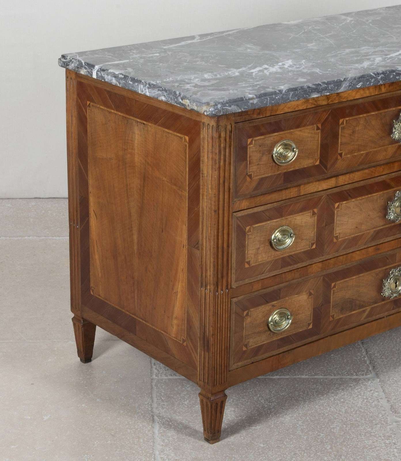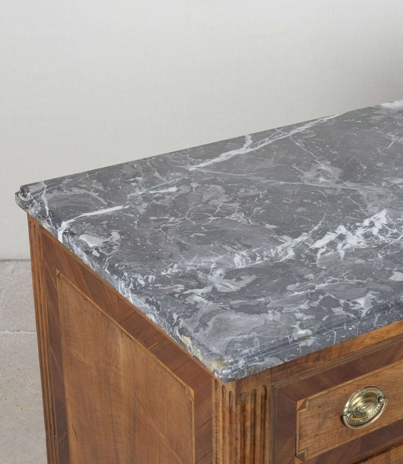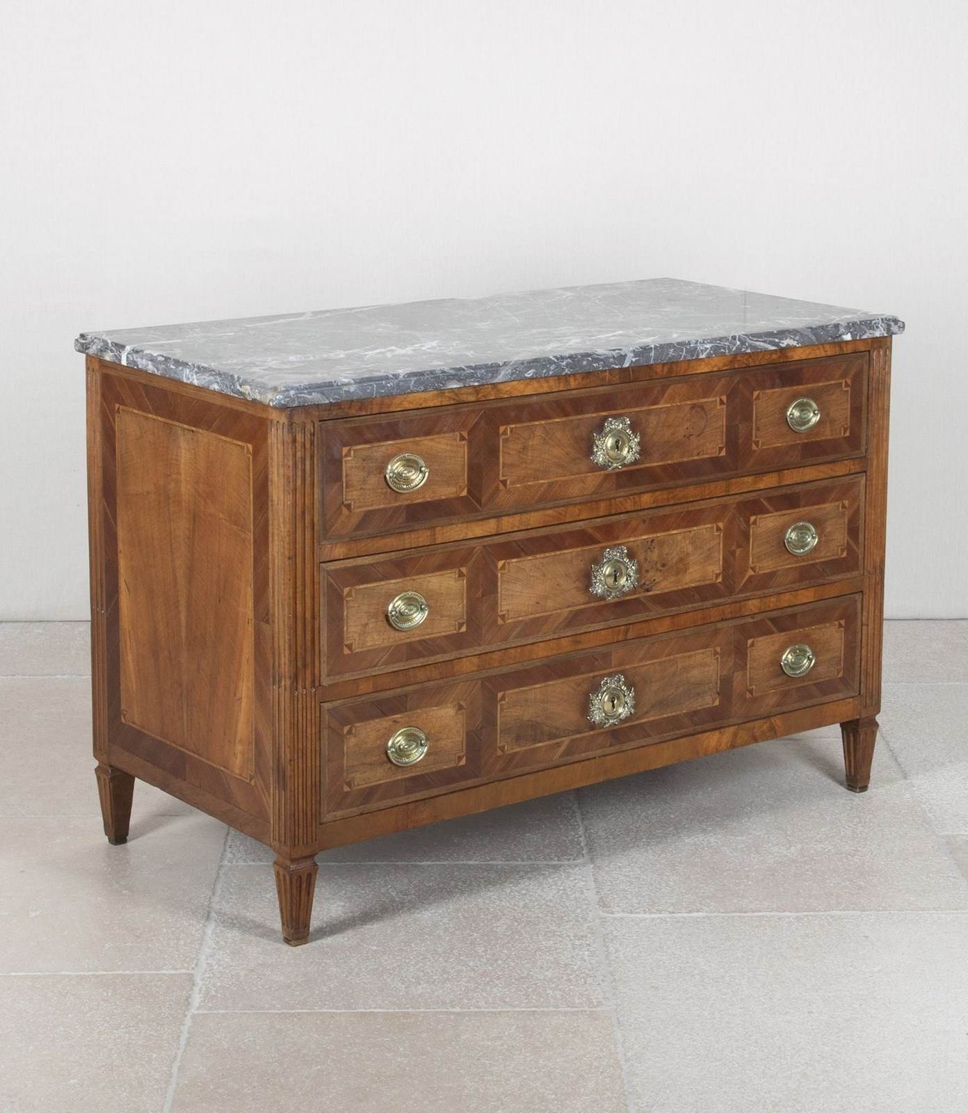 Late 18Th Century French Louis XVI Marble Top Marquetry Commode