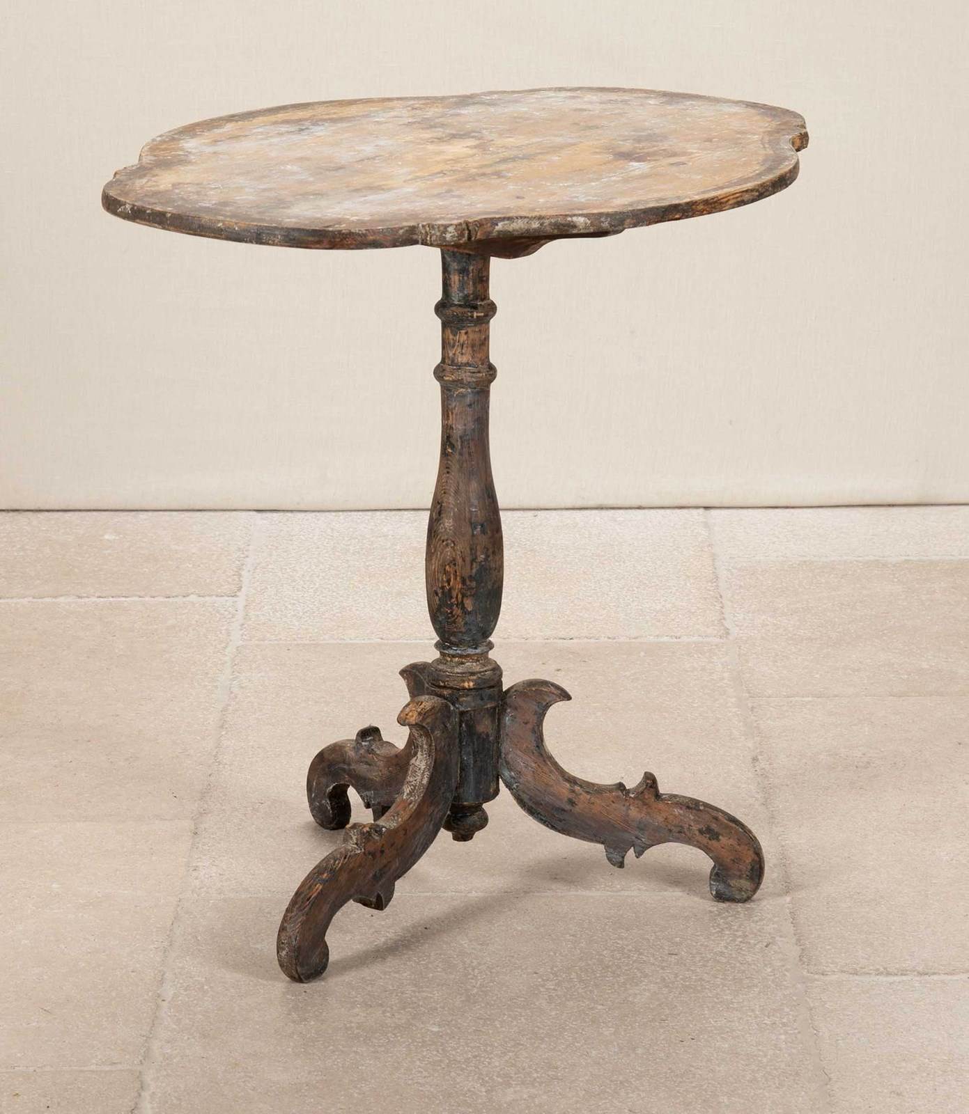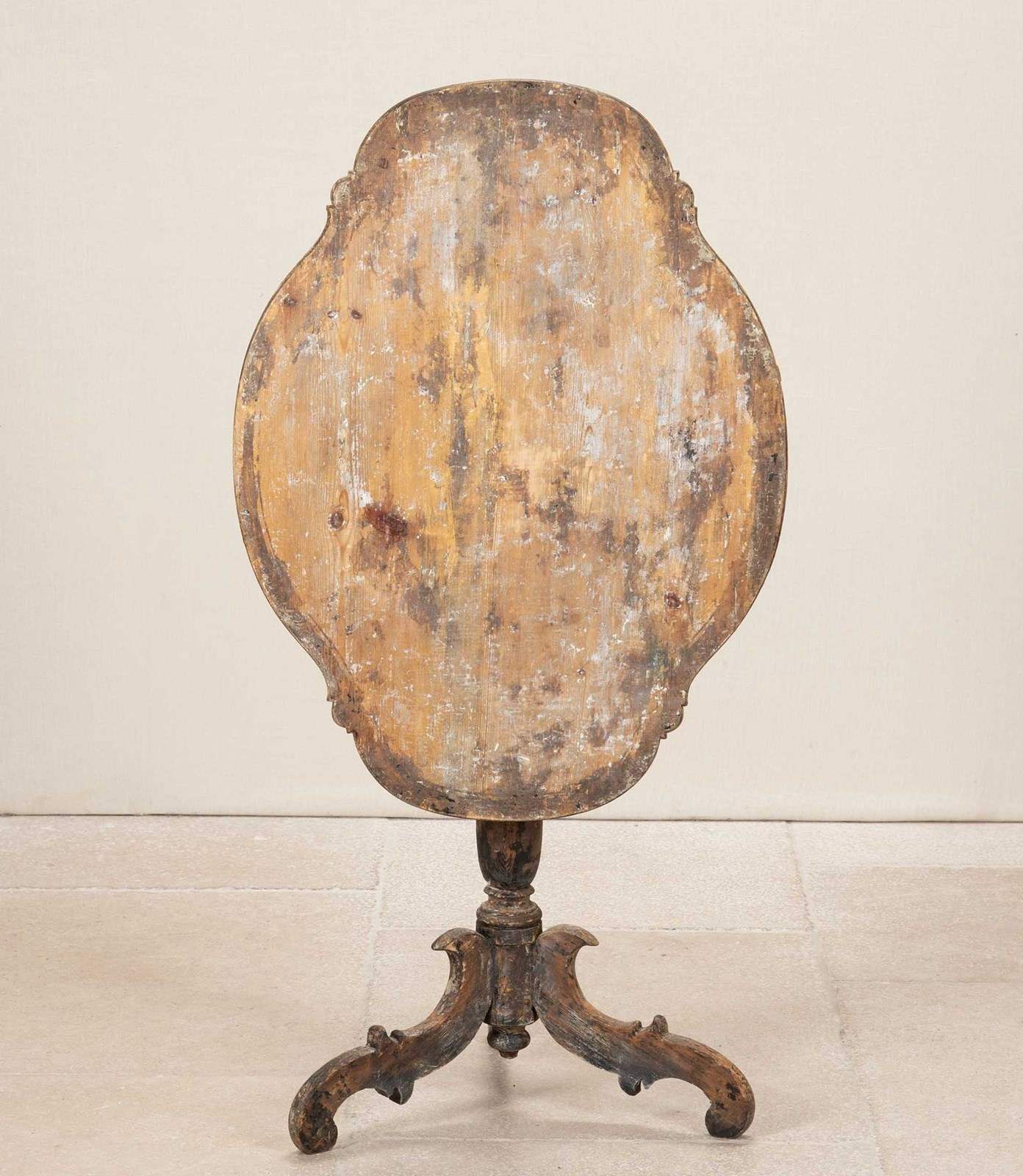 Late 18th Century Swedish Rococo folding table scraped to it's original paint. The table has a decorated tripod base and the table top has the typical Rococo form. A wonderful and rare item.
