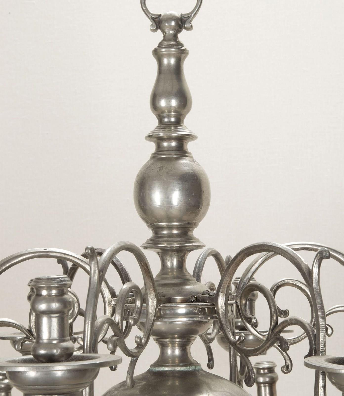 A handsome and bold late 19th Century Dutch twelve light chandelier of typical form in silver plate.