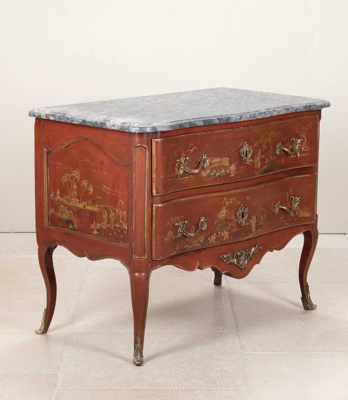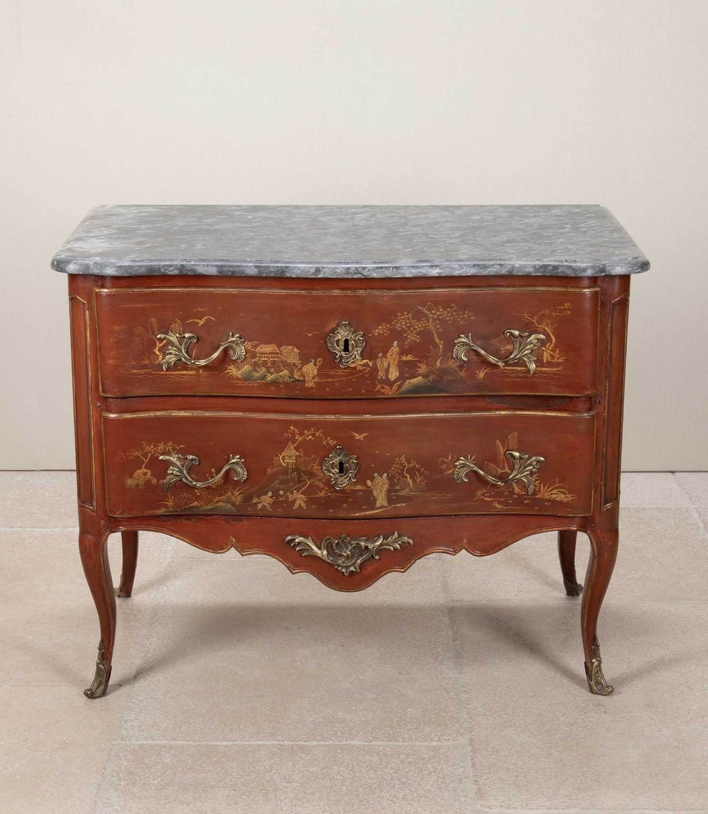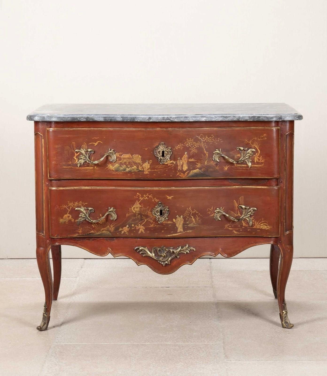 Beautiful mid-18th Century Louis XV Vernis Martin red lacquer two drawer commode.