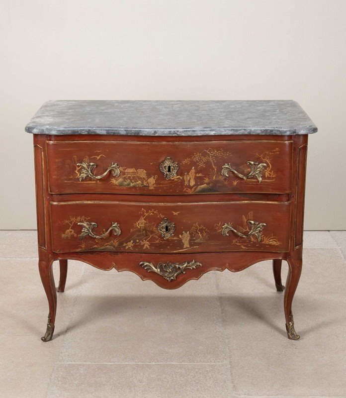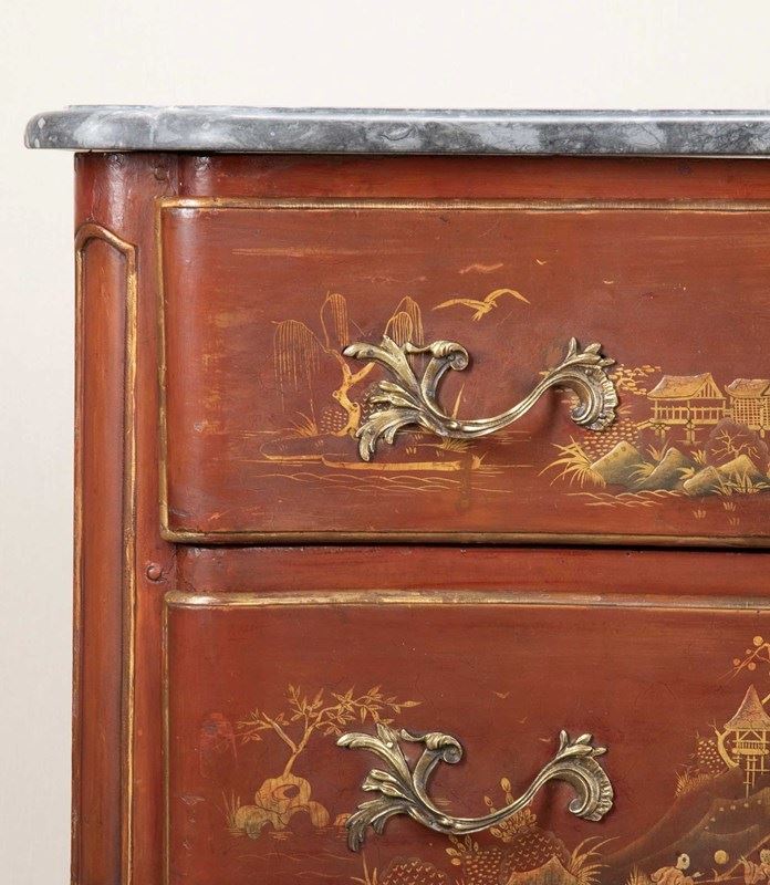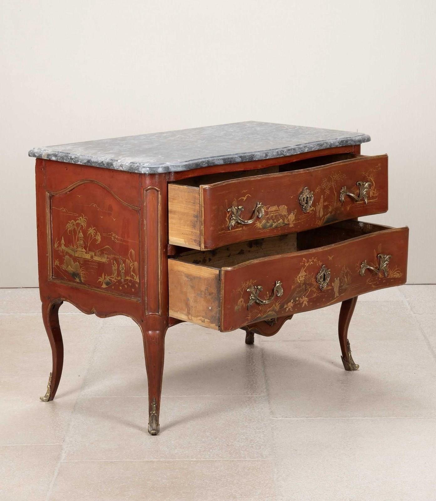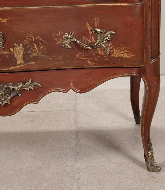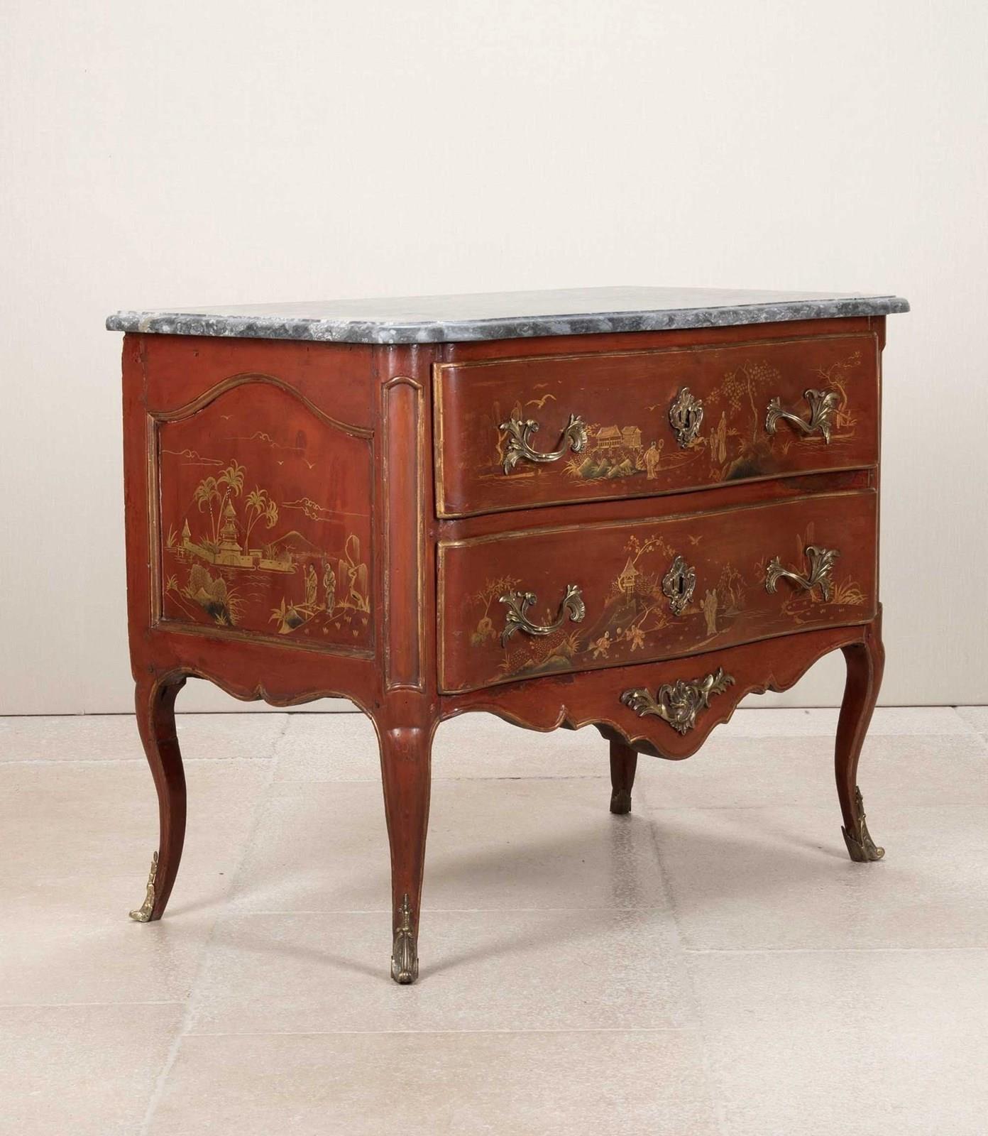 Mid-18Th Century French Louis XV Red Vernis Martin Chinoiserie Lacquer Commode
