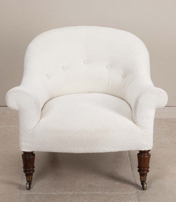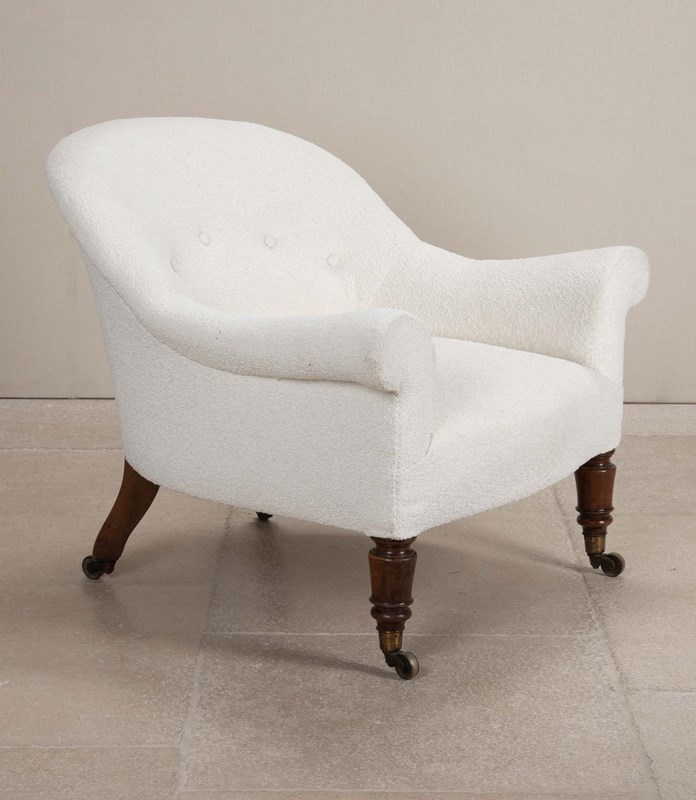 An exceptionally elegant and comfortable low slung armchair recently recovered.