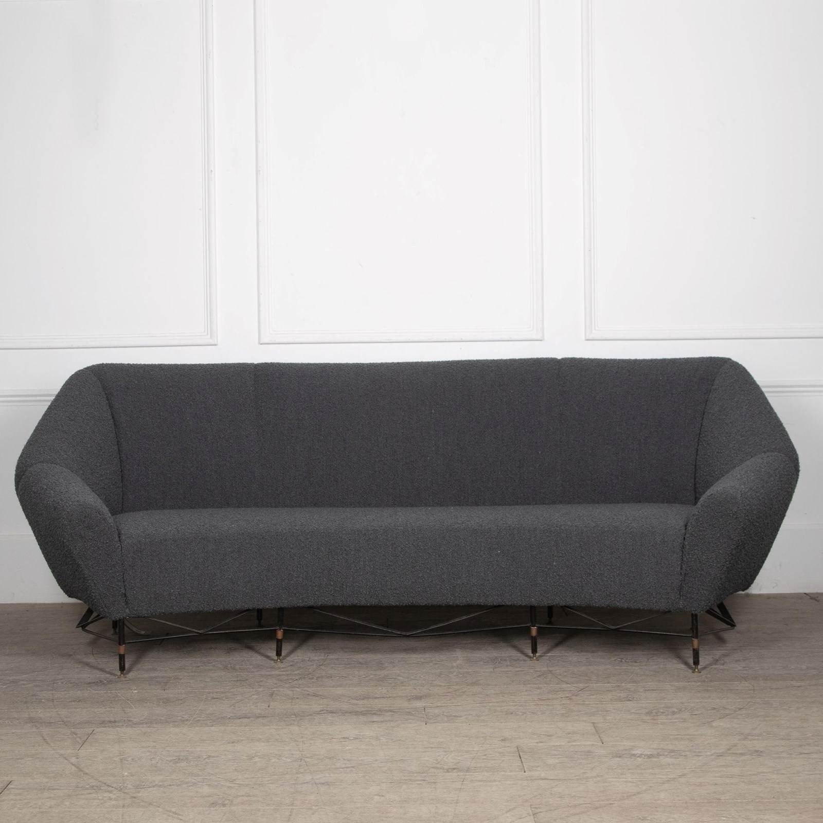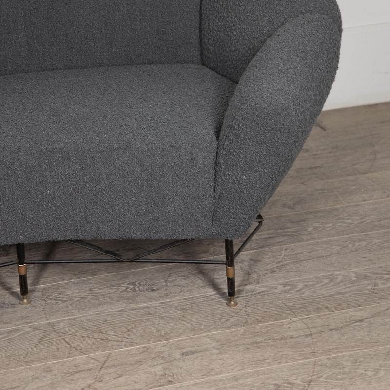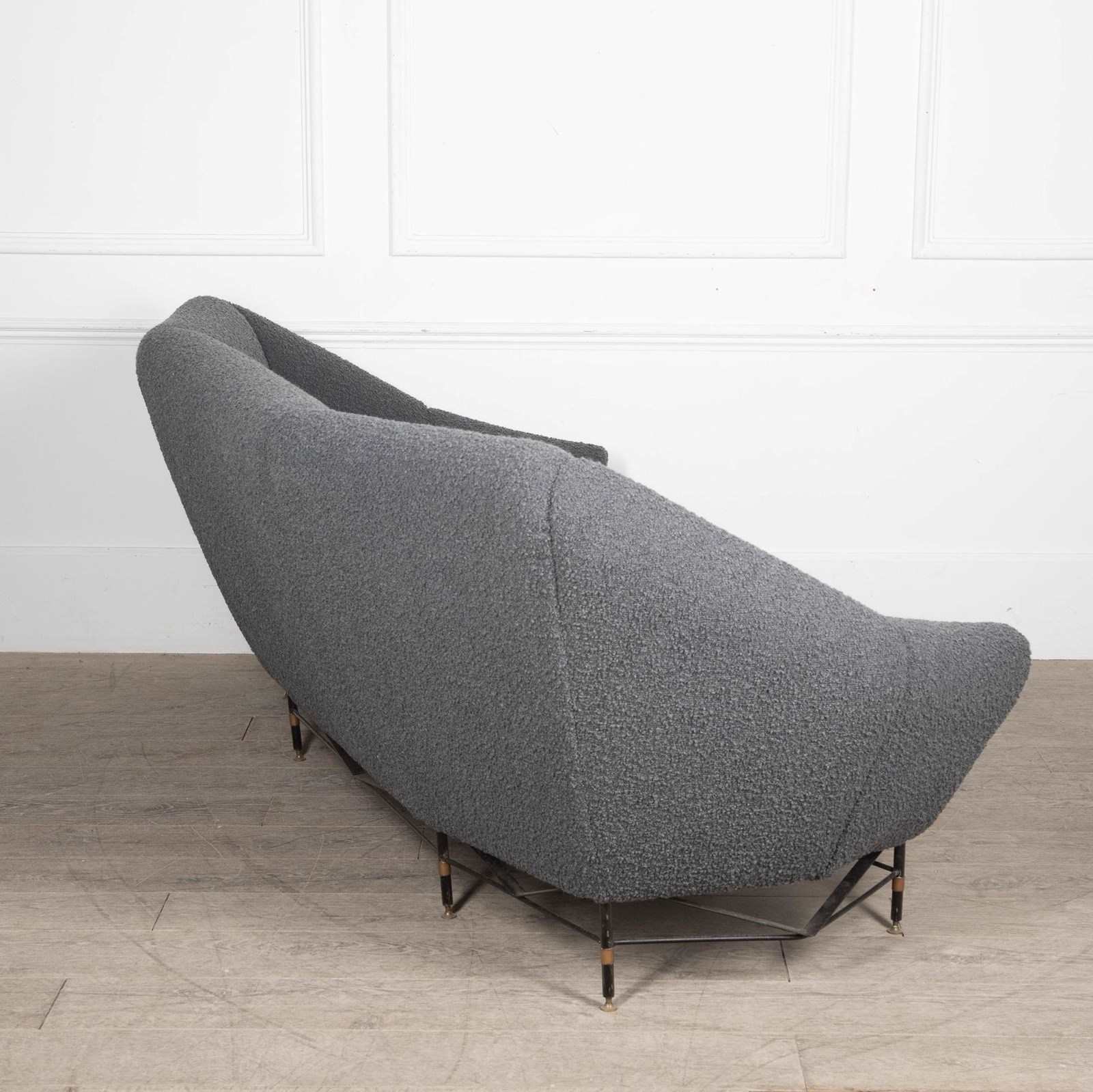 Three seater, newly reupholstered with a soft grey bouclet.