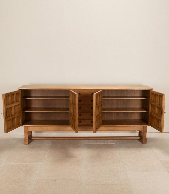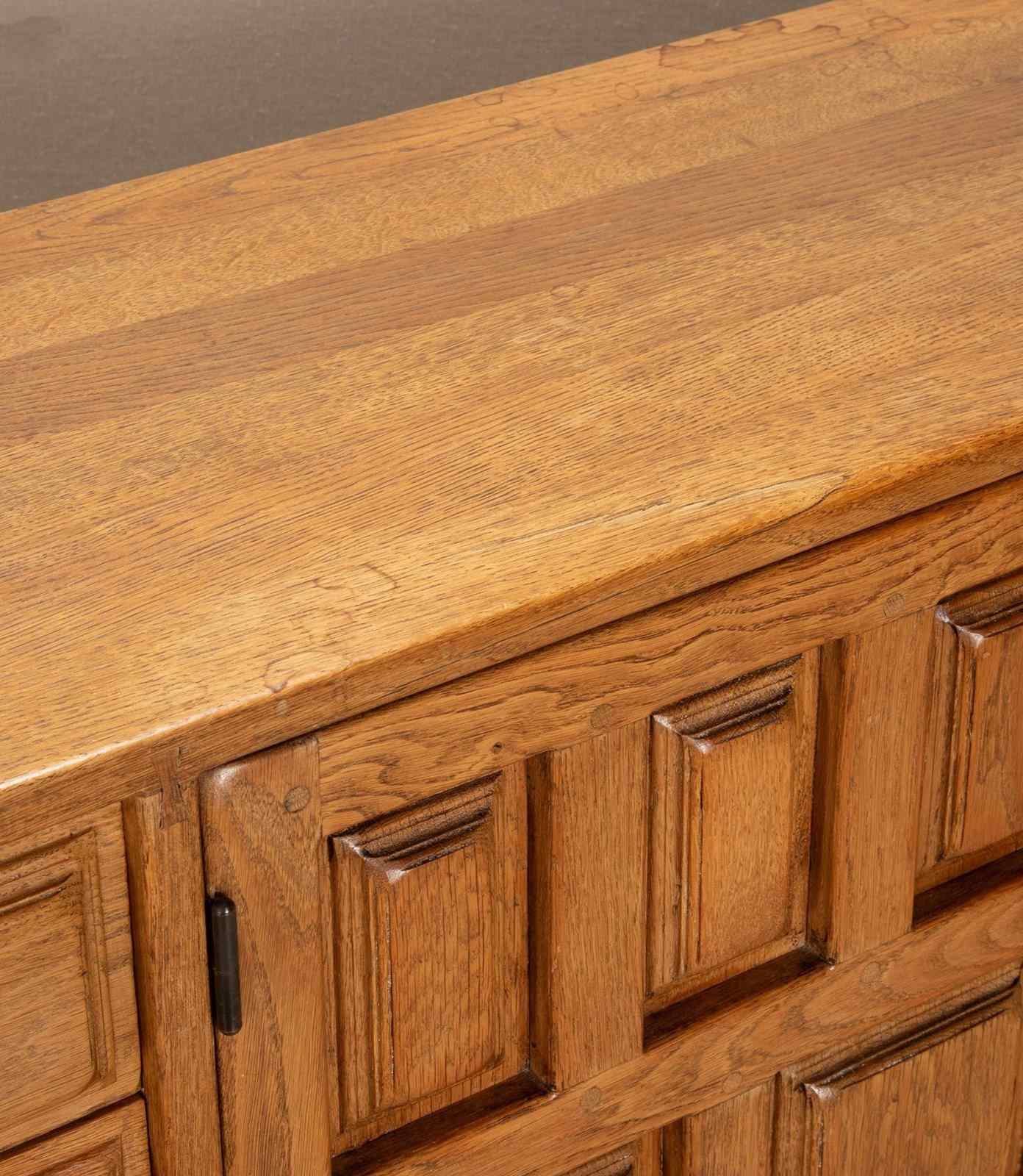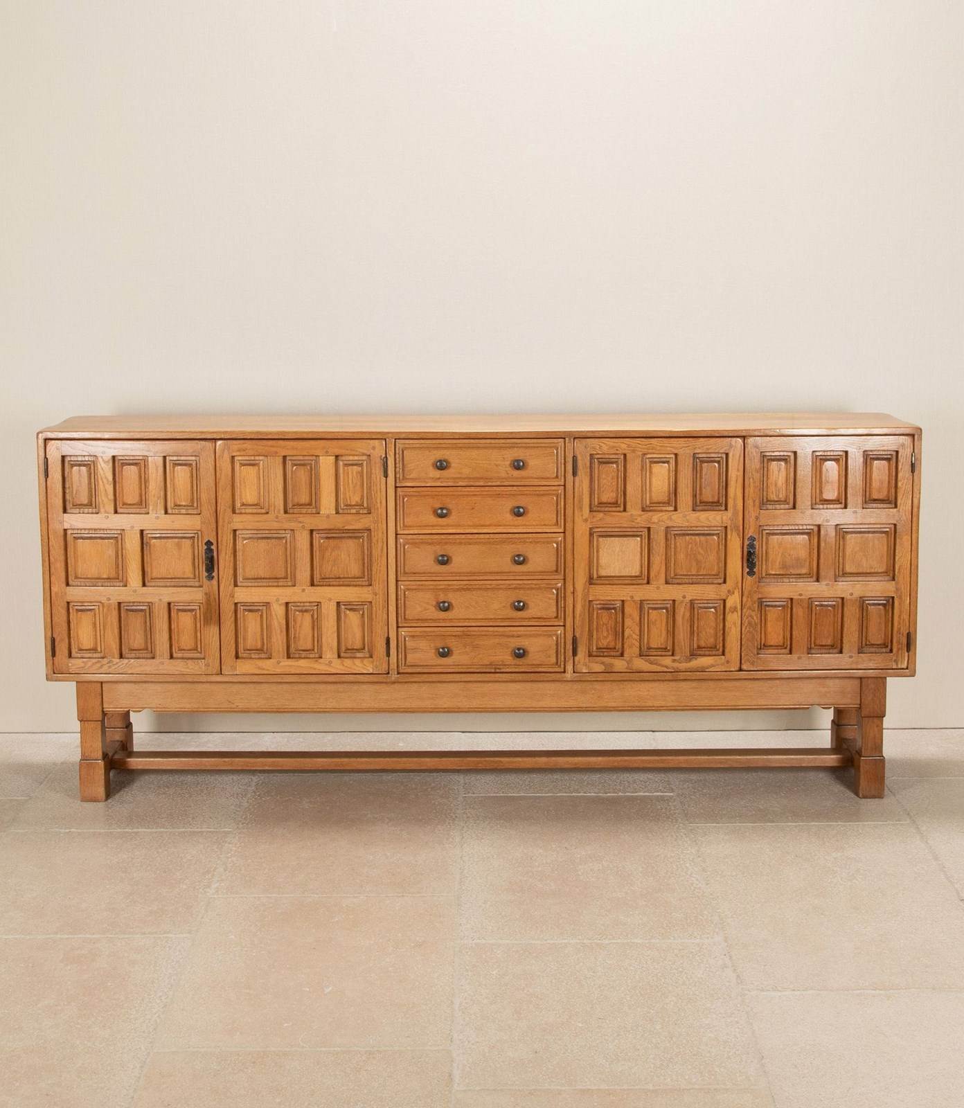 Mid-Century Spanish Brutalist sideboard with Geometric design in pale oak.