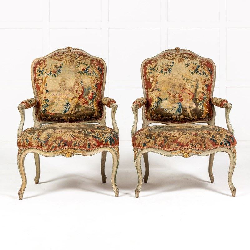 Pair Of 18Th Century French Aubusson Tapestry Chairs