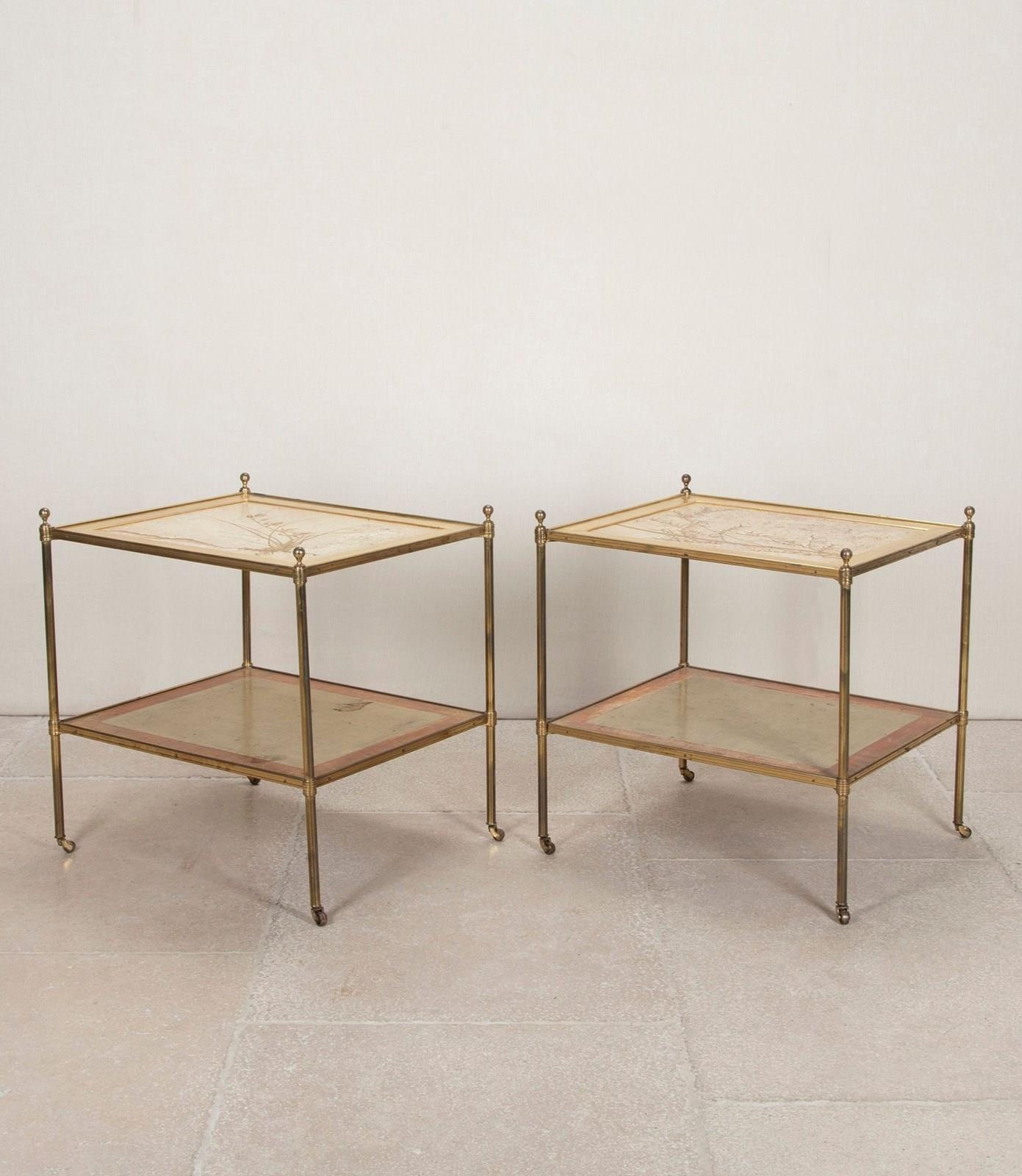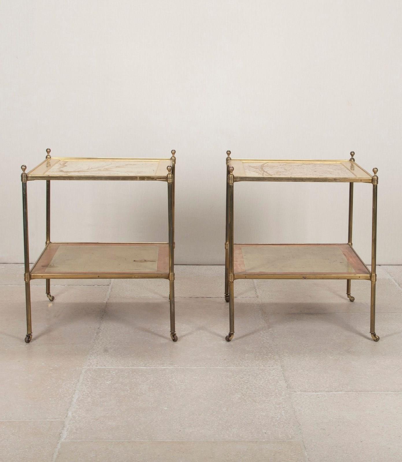 A fabulous pair of 1950s Mallett of London brass two tier side or end tables.