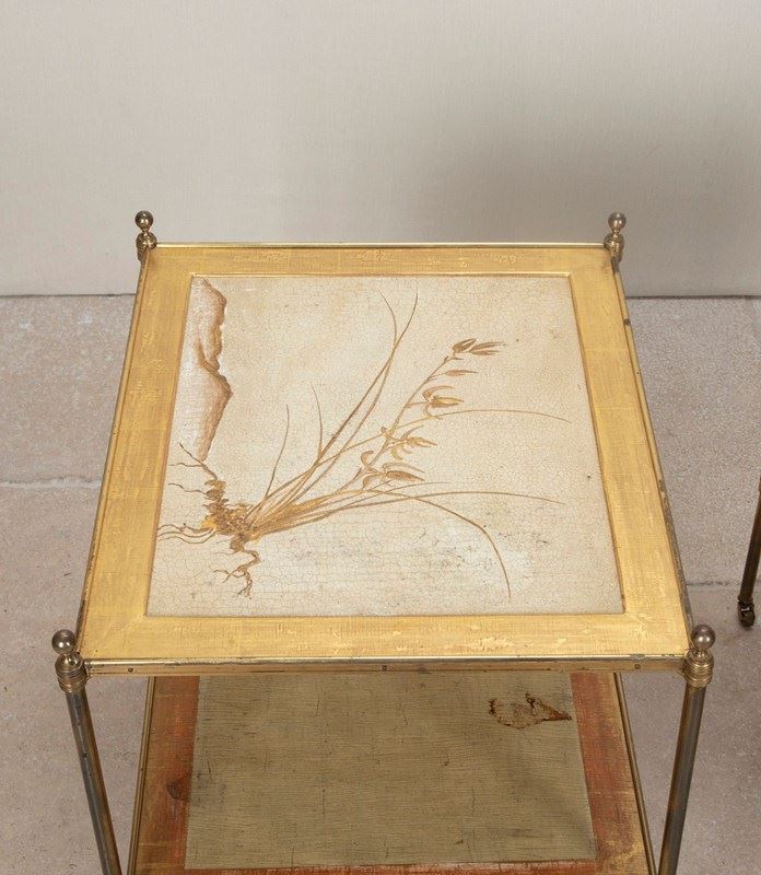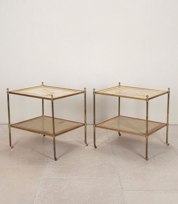 Pair Of 1950S Mallett Of London Brass And Oriental Side Tables