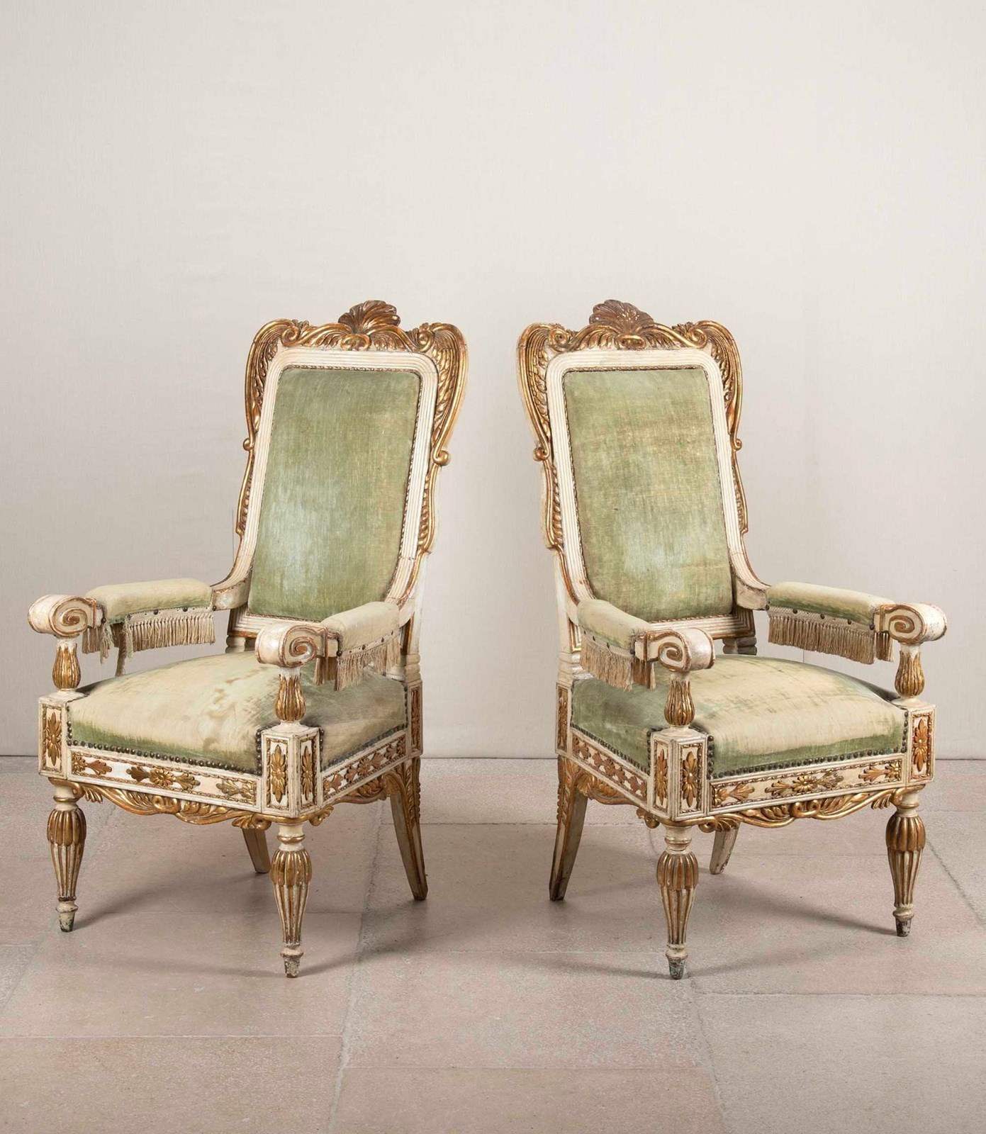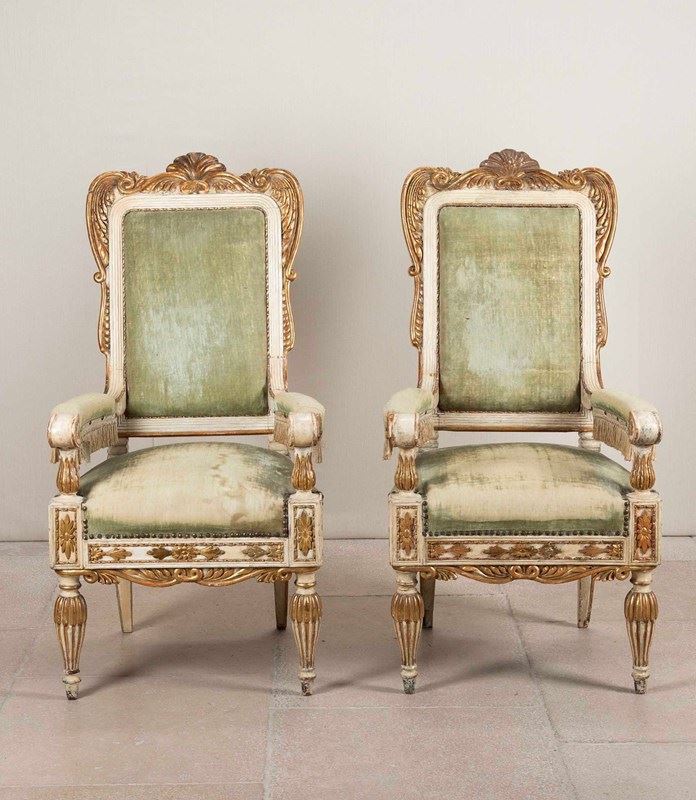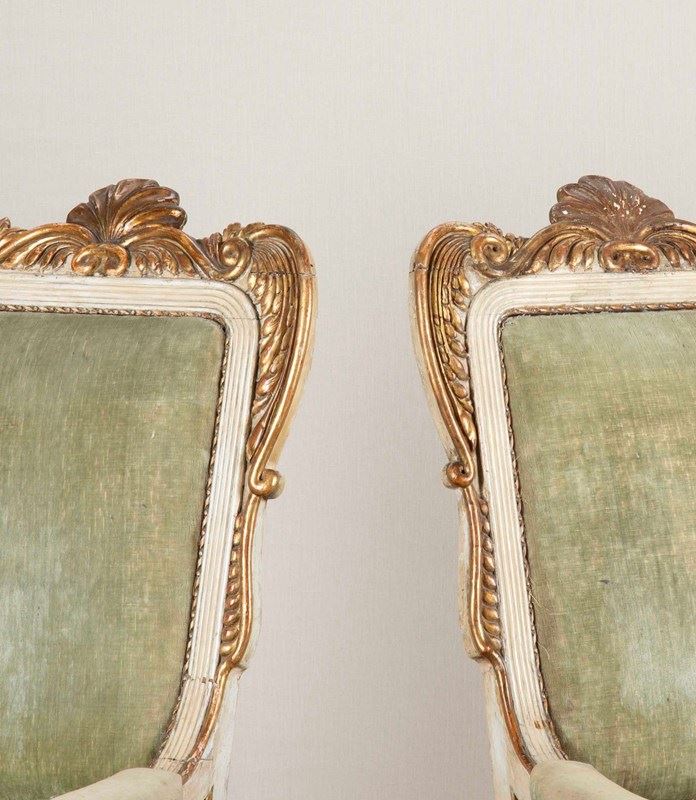 Pair Of 19Th Century Swedish Cream And Gilt Armchairs