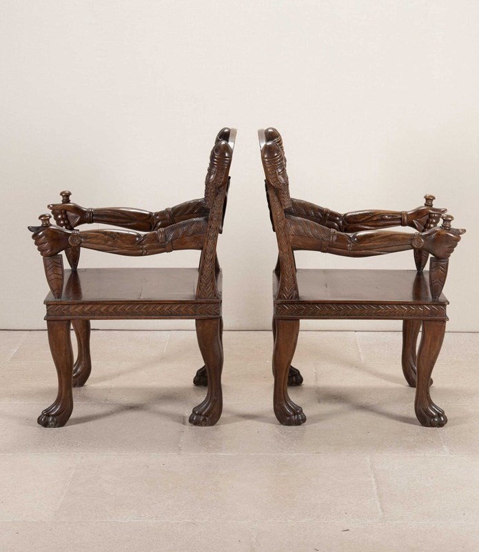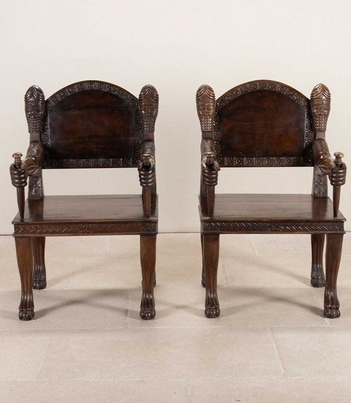 Pair Of 20Th Century Anglo-Indian Carved Open Armchairs