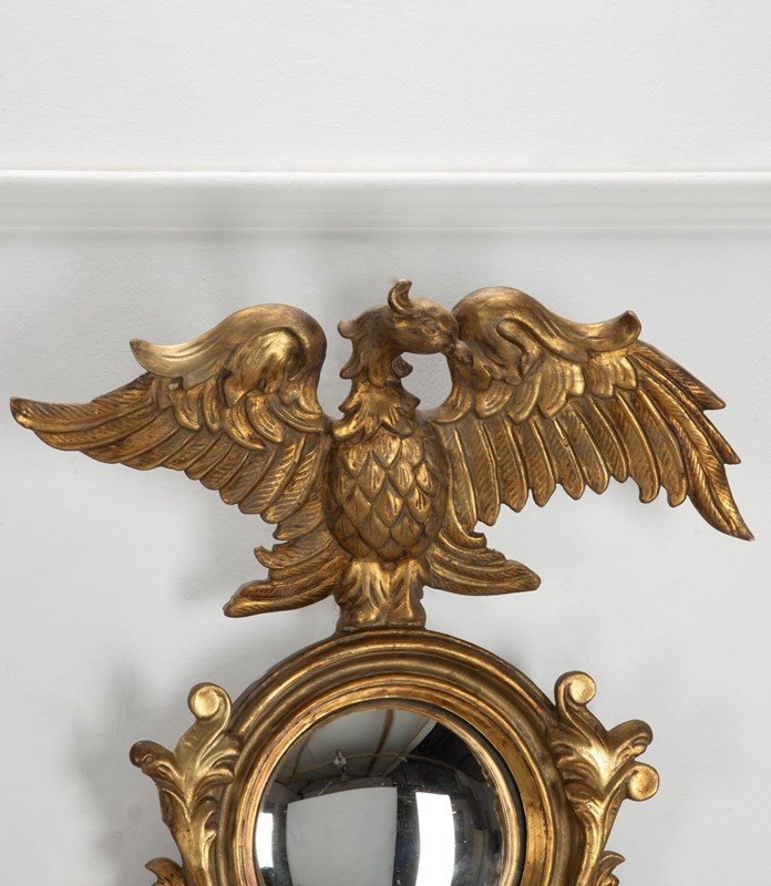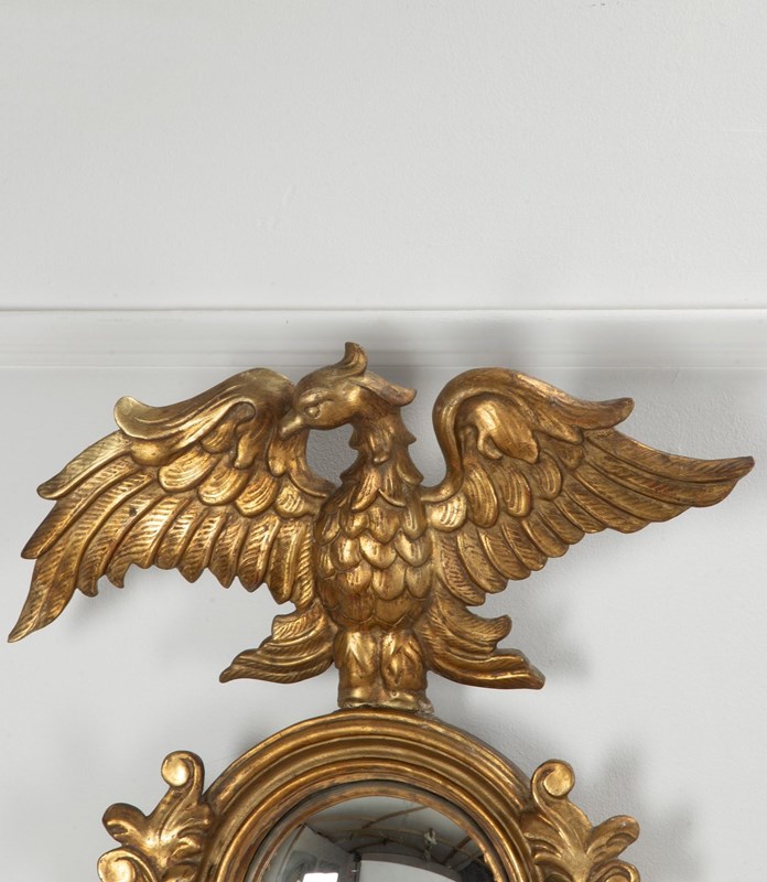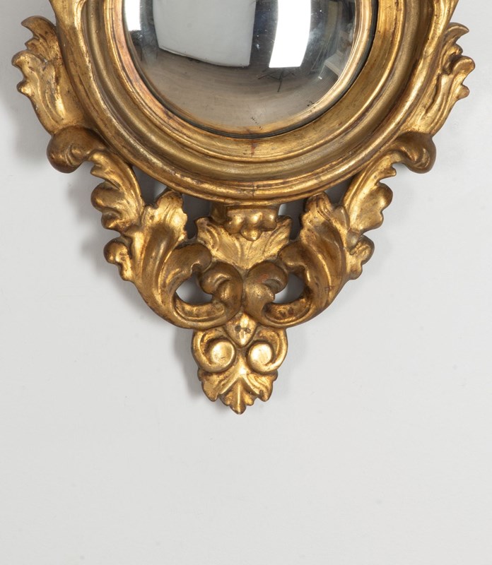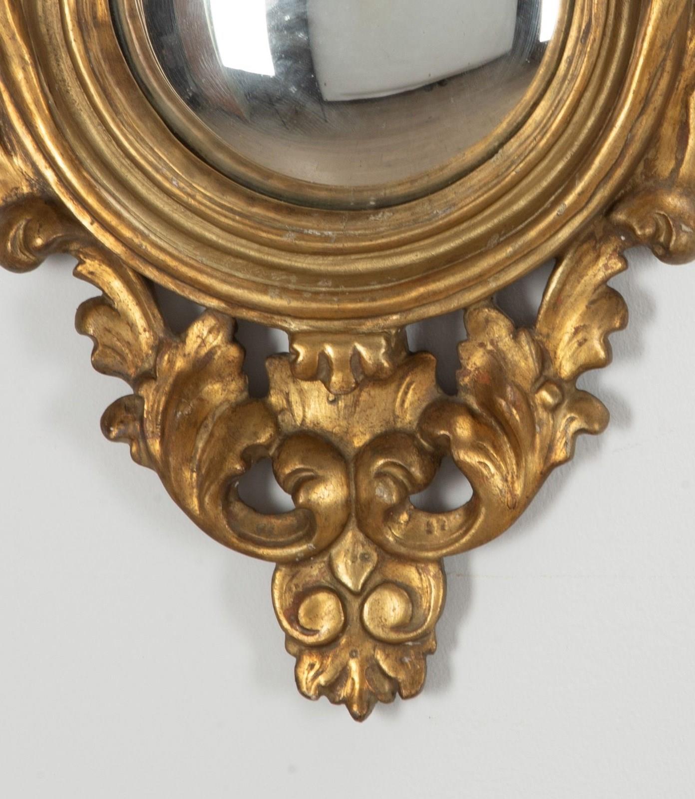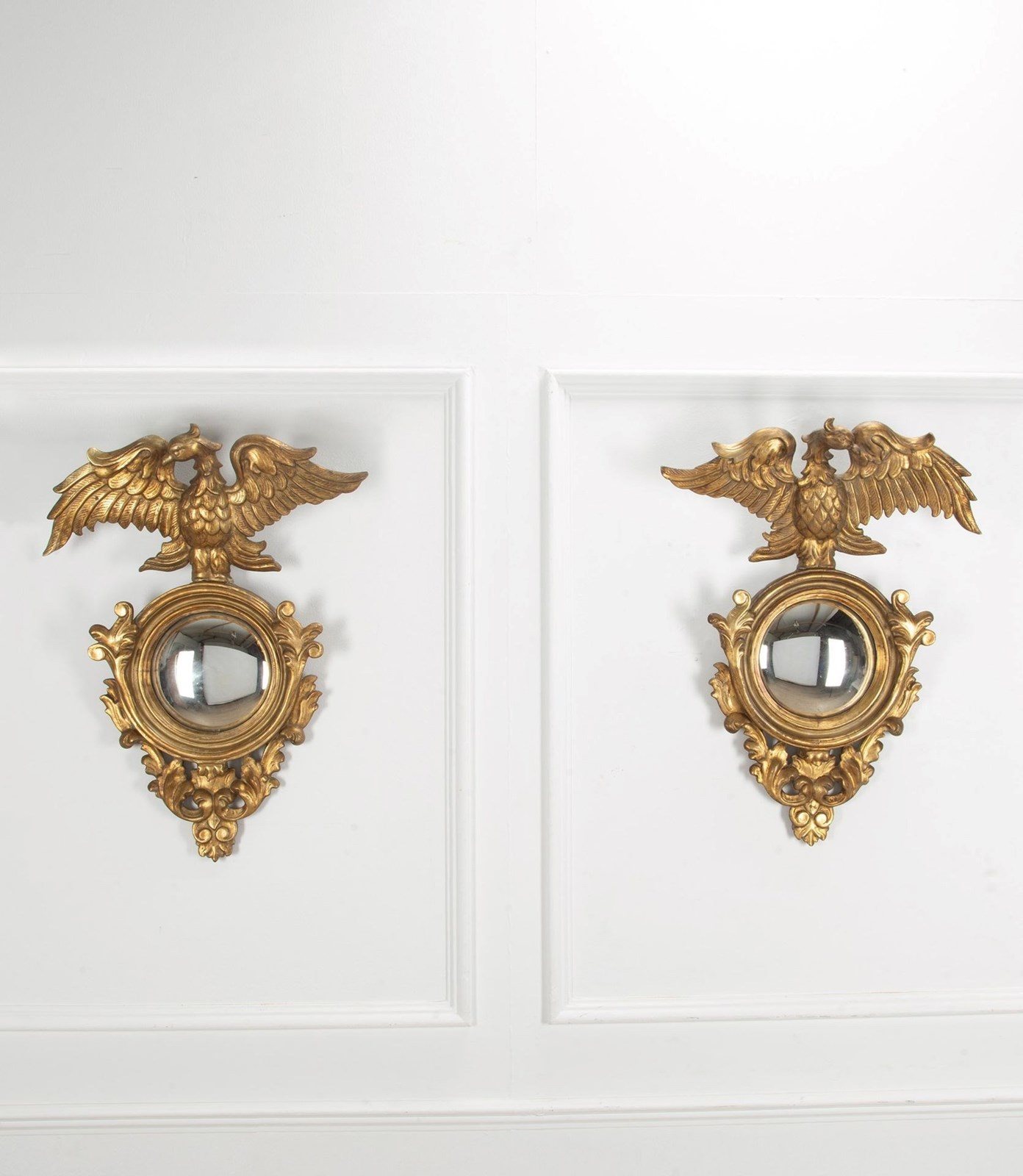 A rare pair of early 20th Century French giltwood convex mirrors.