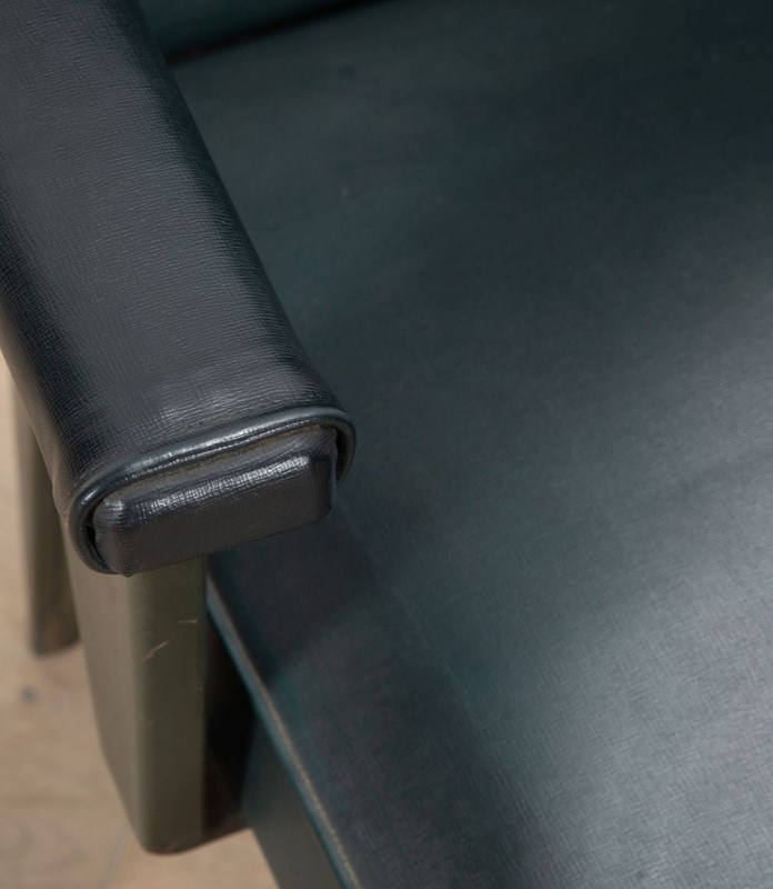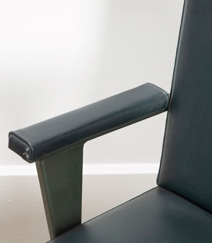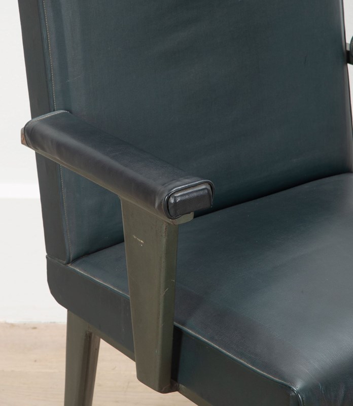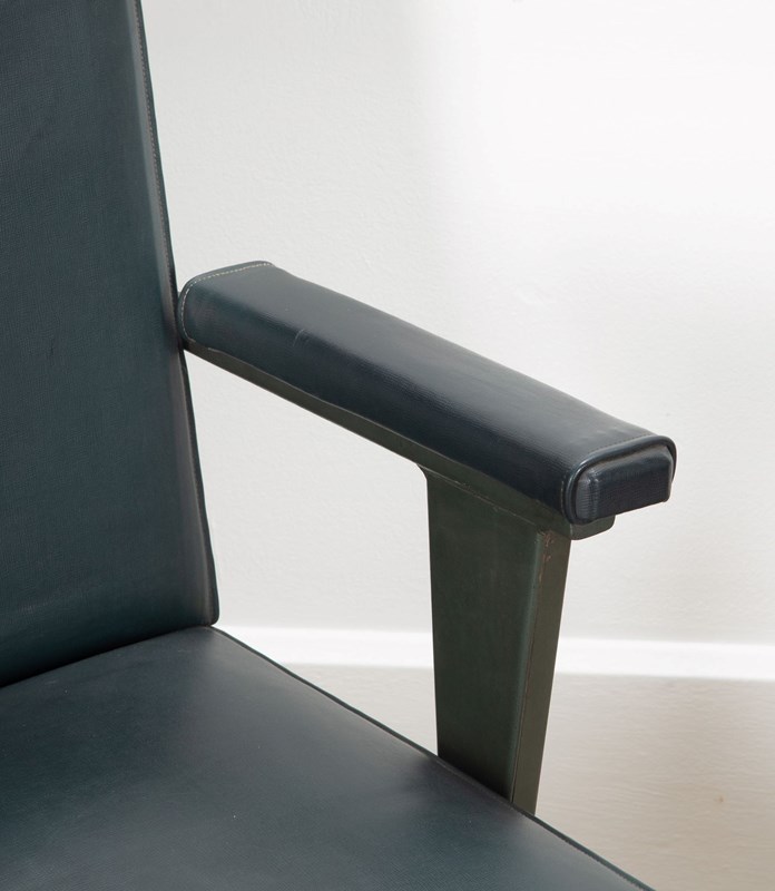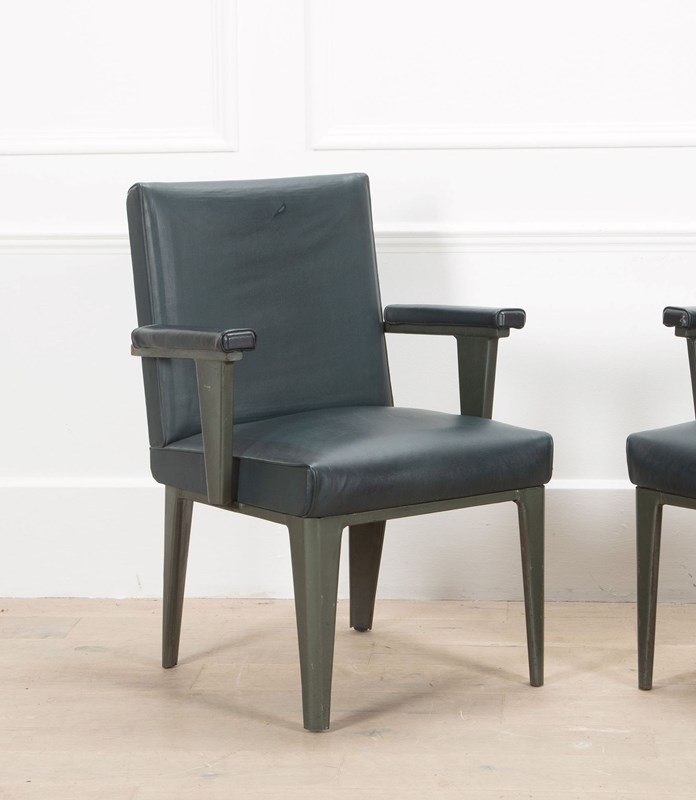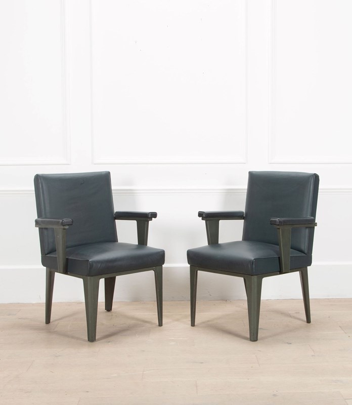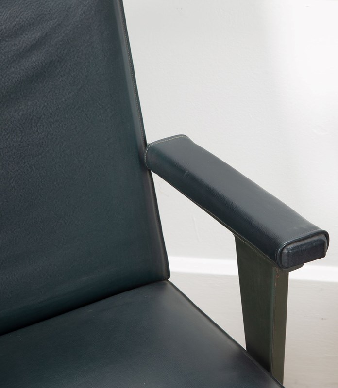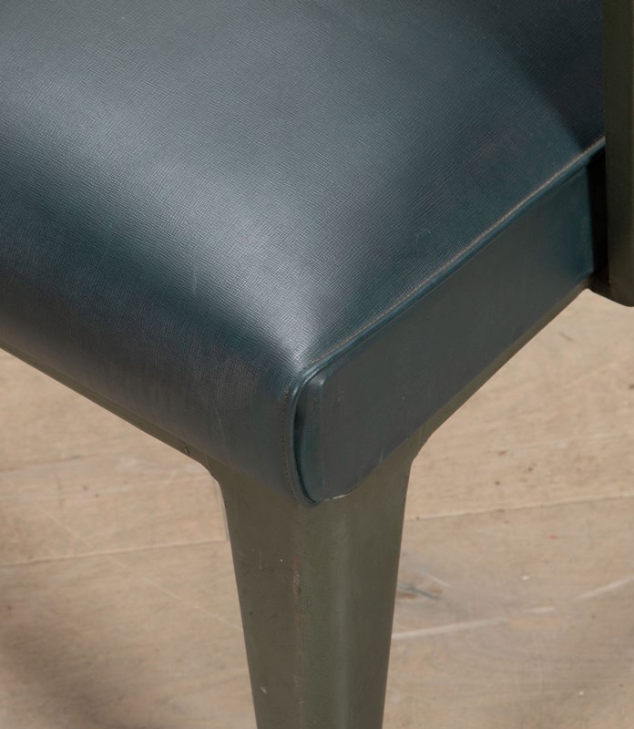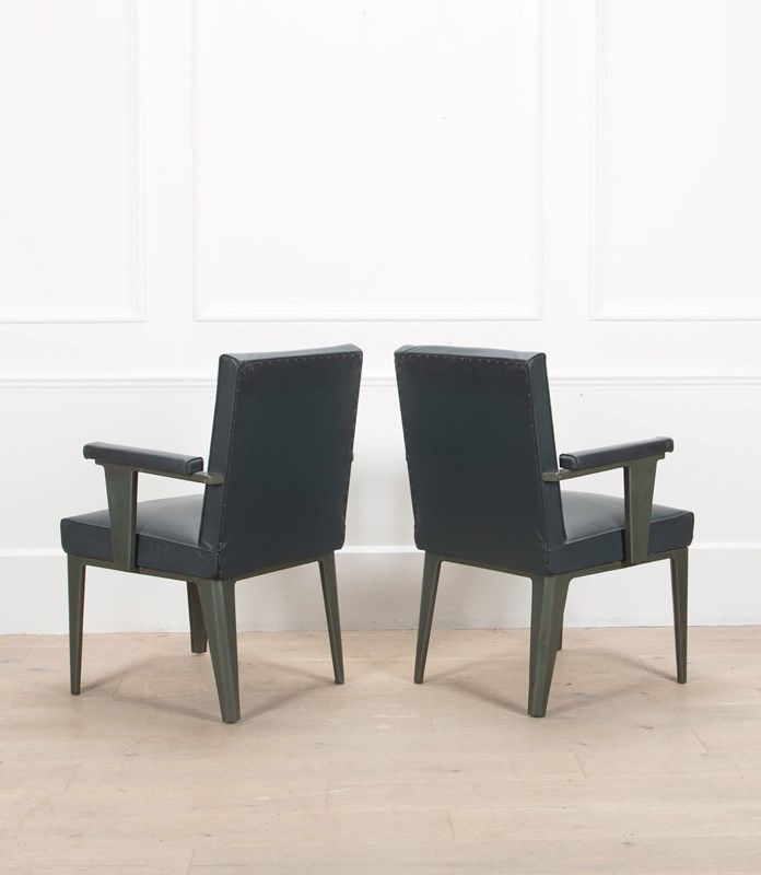 Designed by Andre Domin and Marcel Genevriere for Maison Dominique. Still with their original dark green upholstery and painted metal frames.