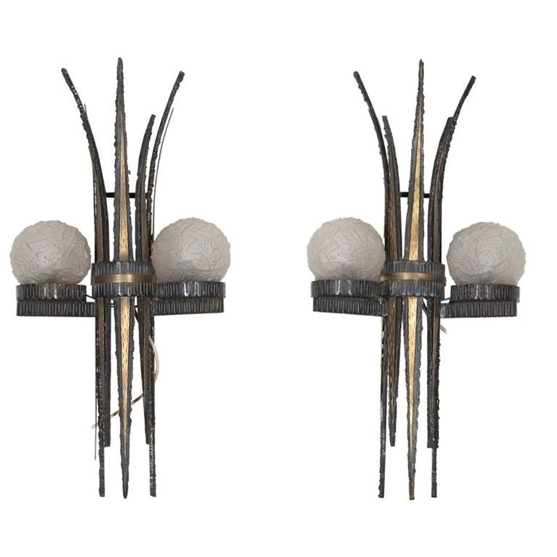 Pair Of 20Th Century French Brutalist Style Wall Sconces