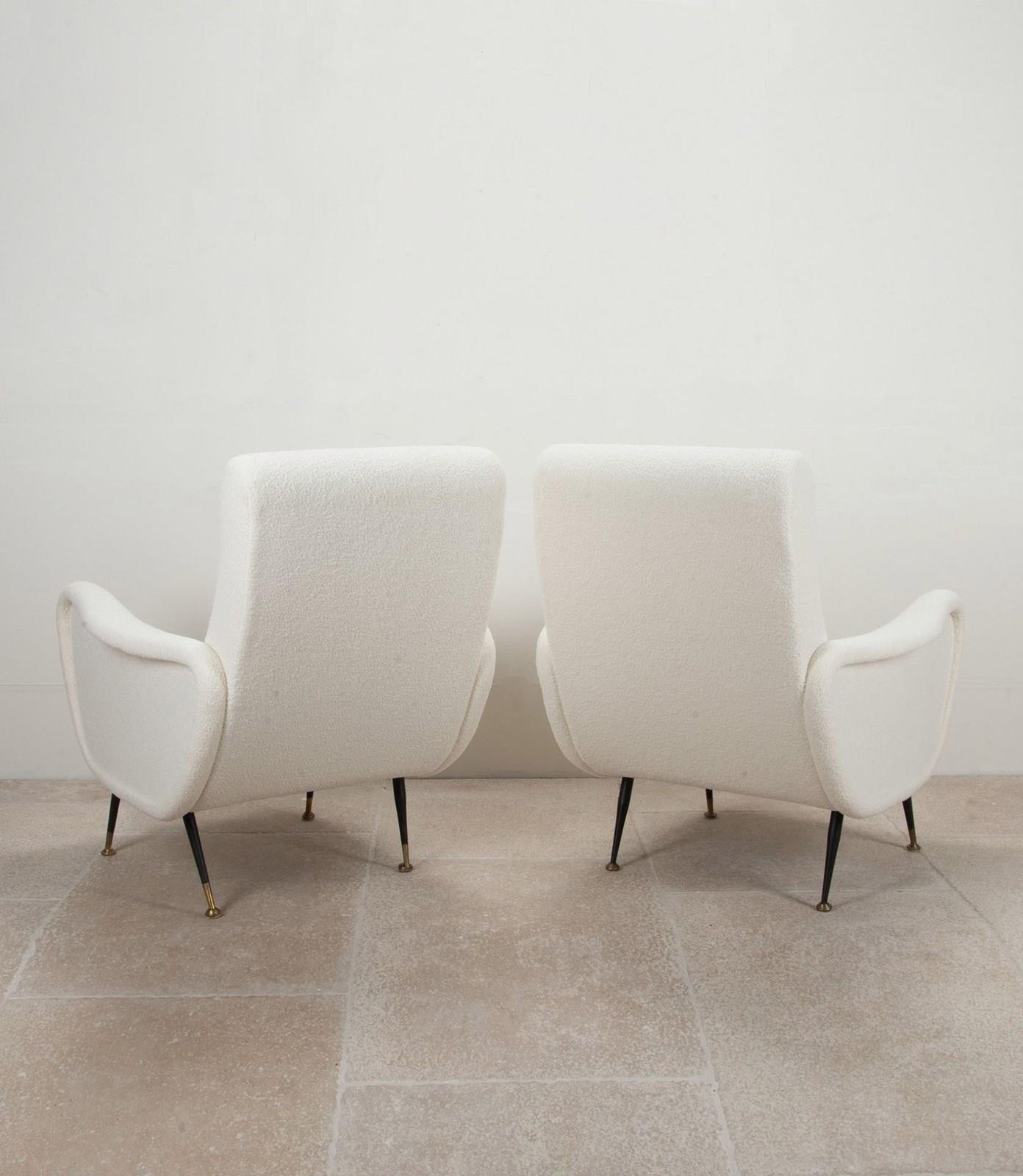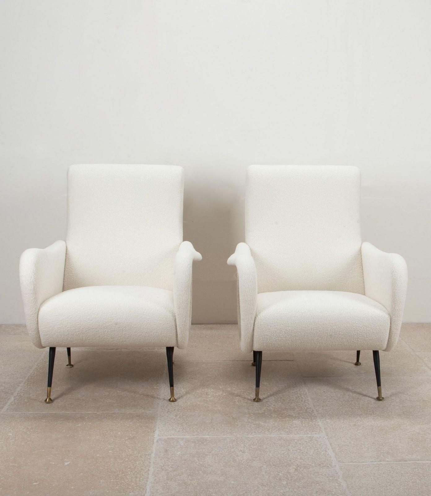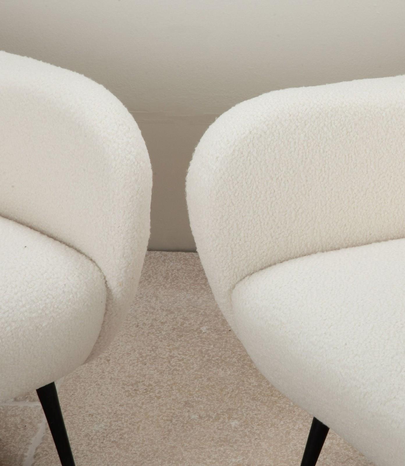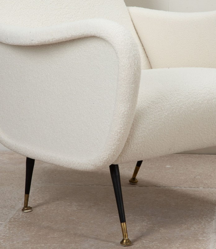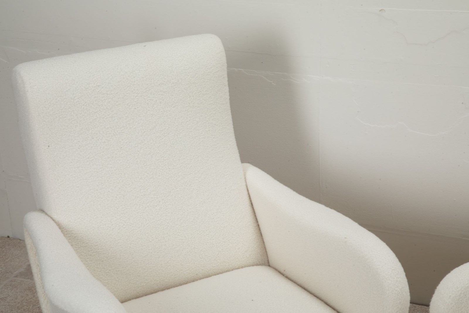 In the style of Marco Zanuso. Upholstered in off-white bouclet.