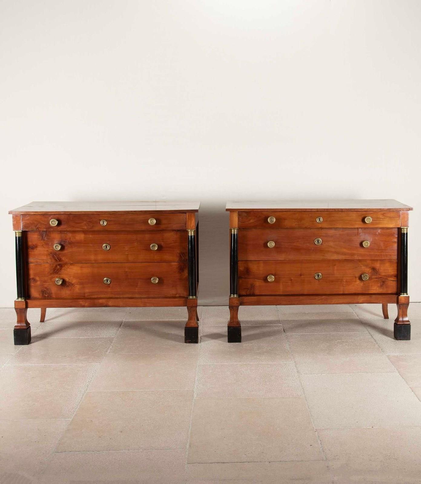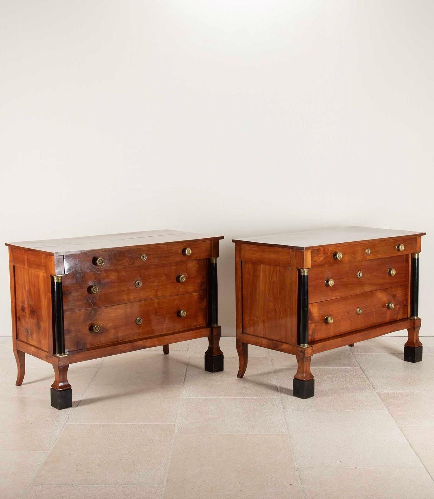 A fabulous pair of early 19th Century Italian Empire cherrywood commodes.