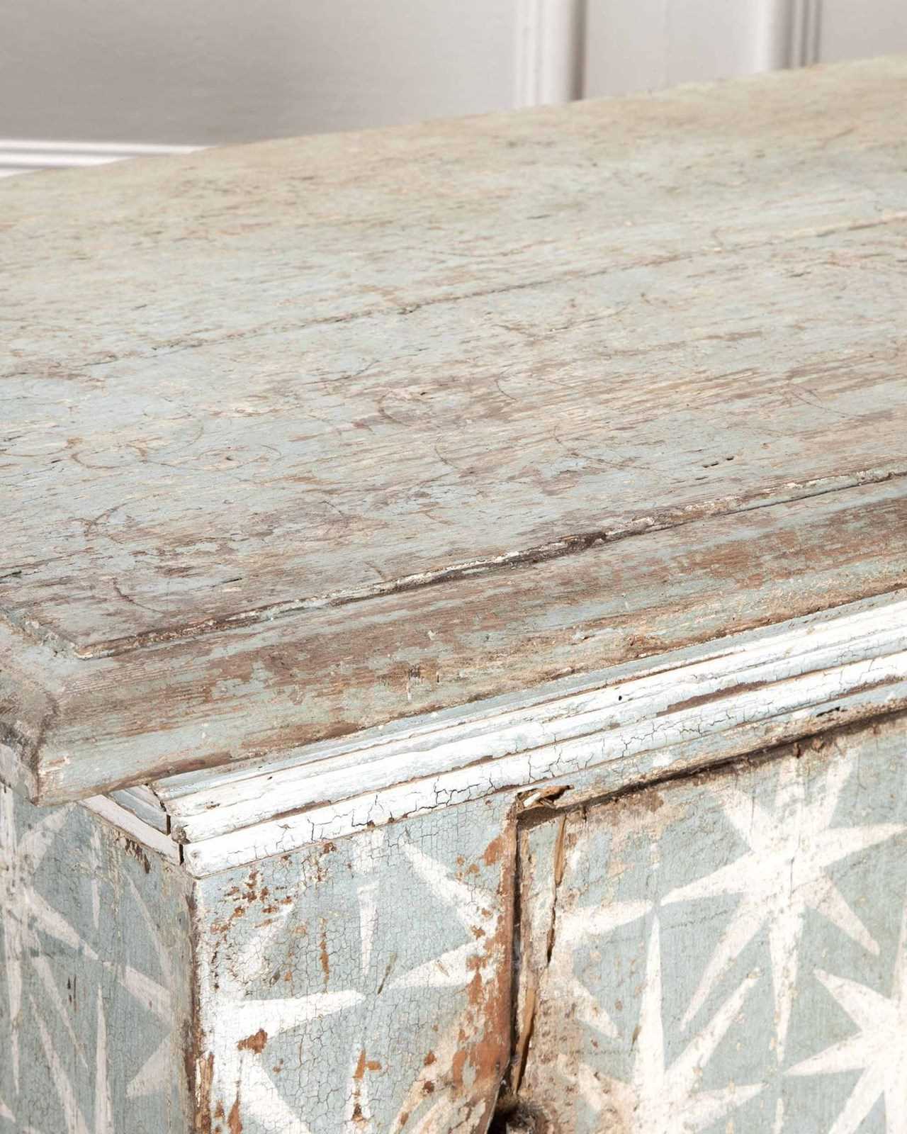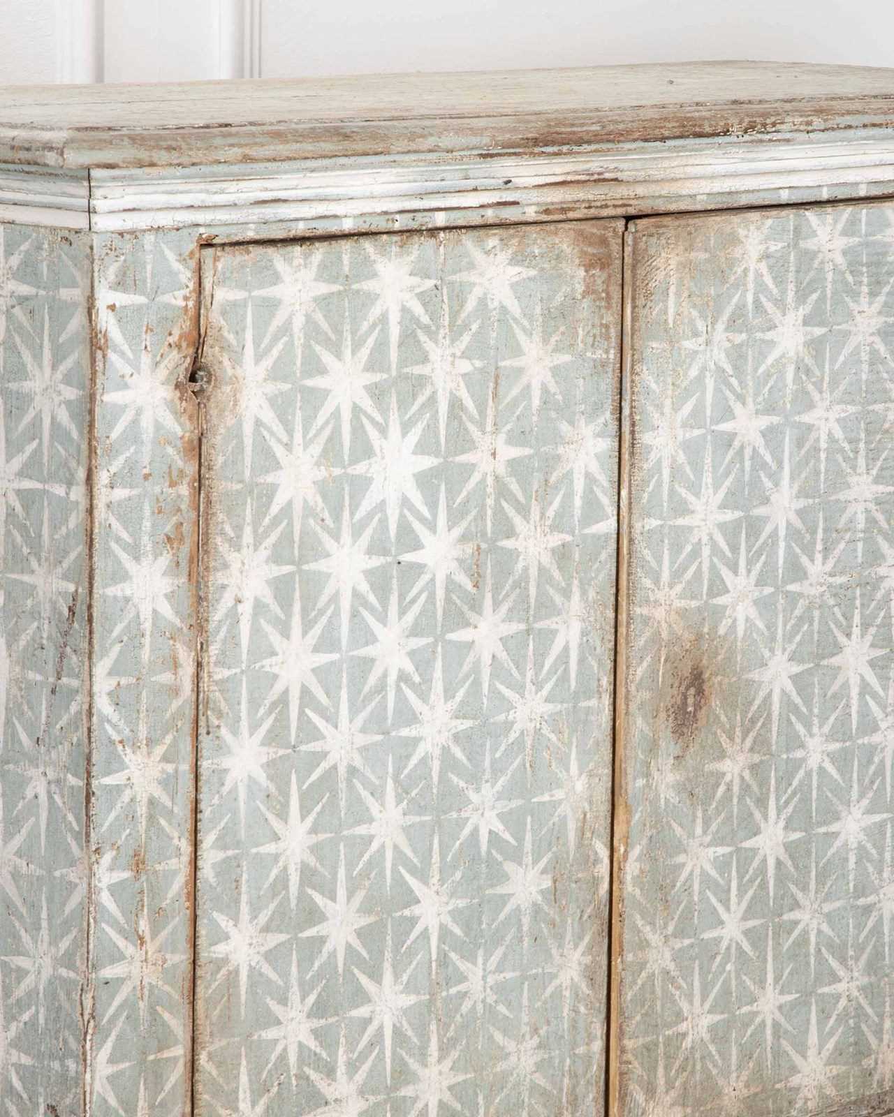 Painted in a blue and white star pattern.