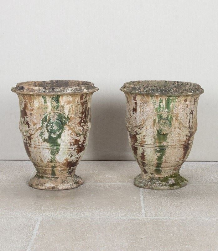 Pair Of Late 18Th Century Anduze Glazed Terracotta Planters