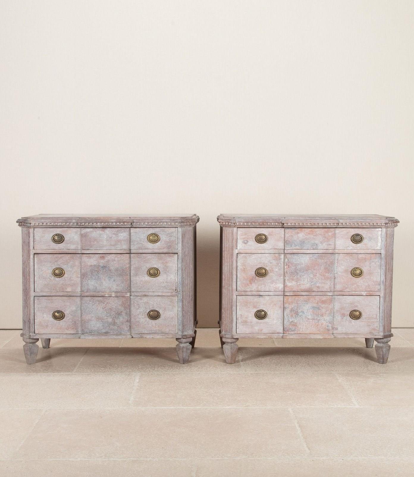 Pair of late 19th Century Swedish painted three drawer commodes of architectural form.