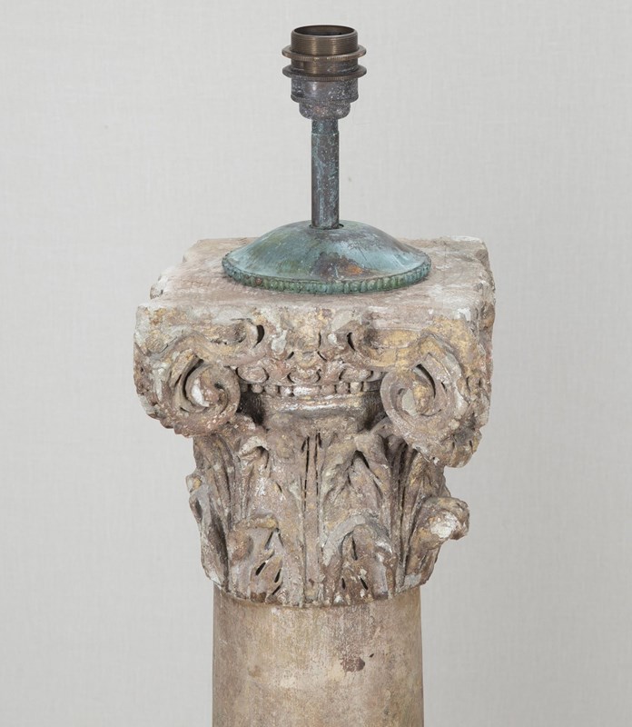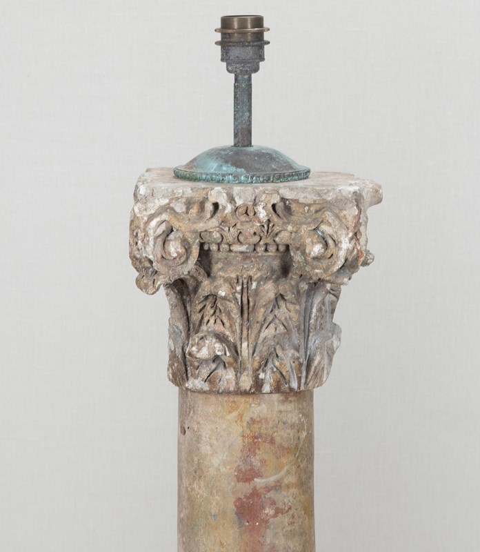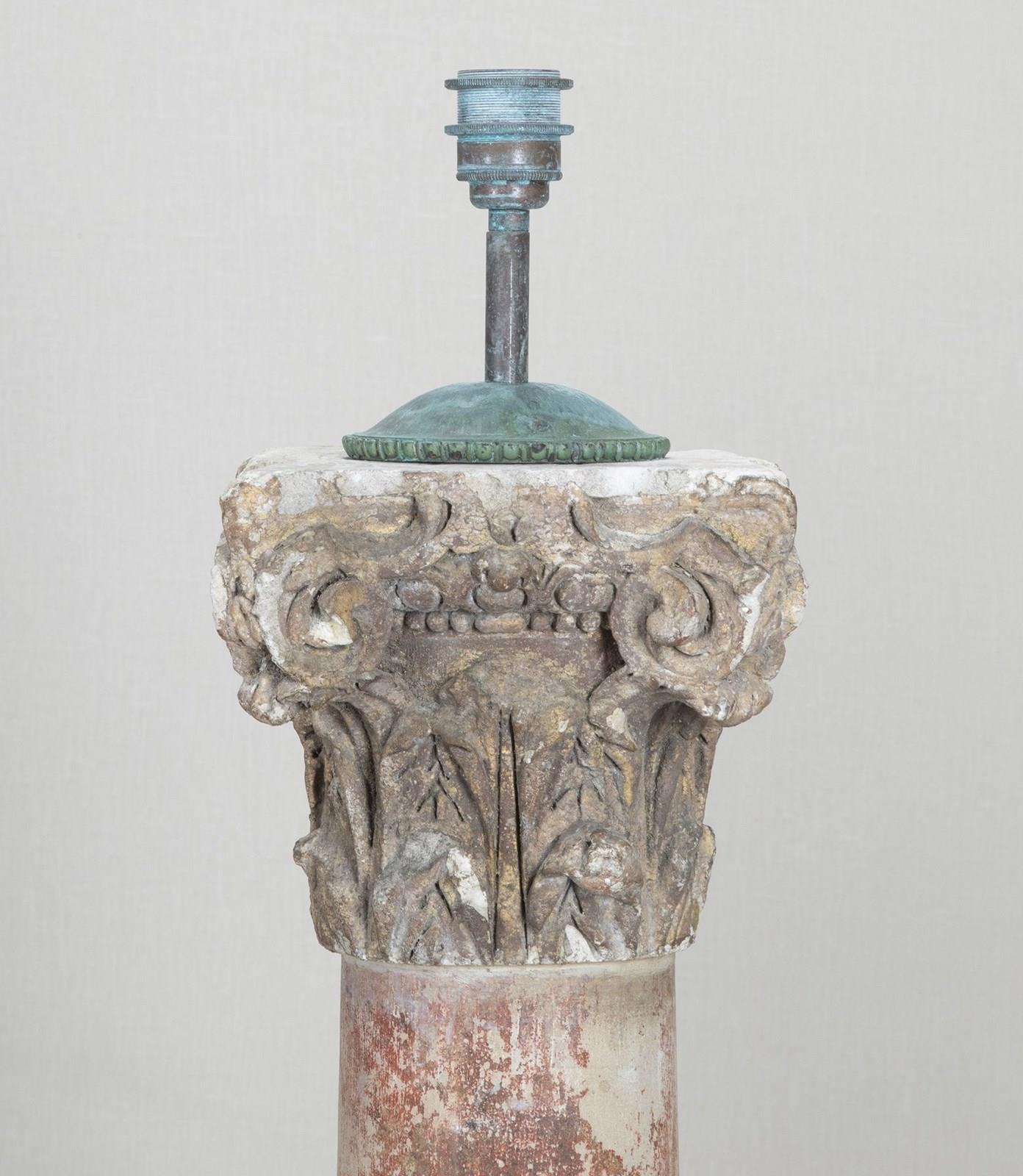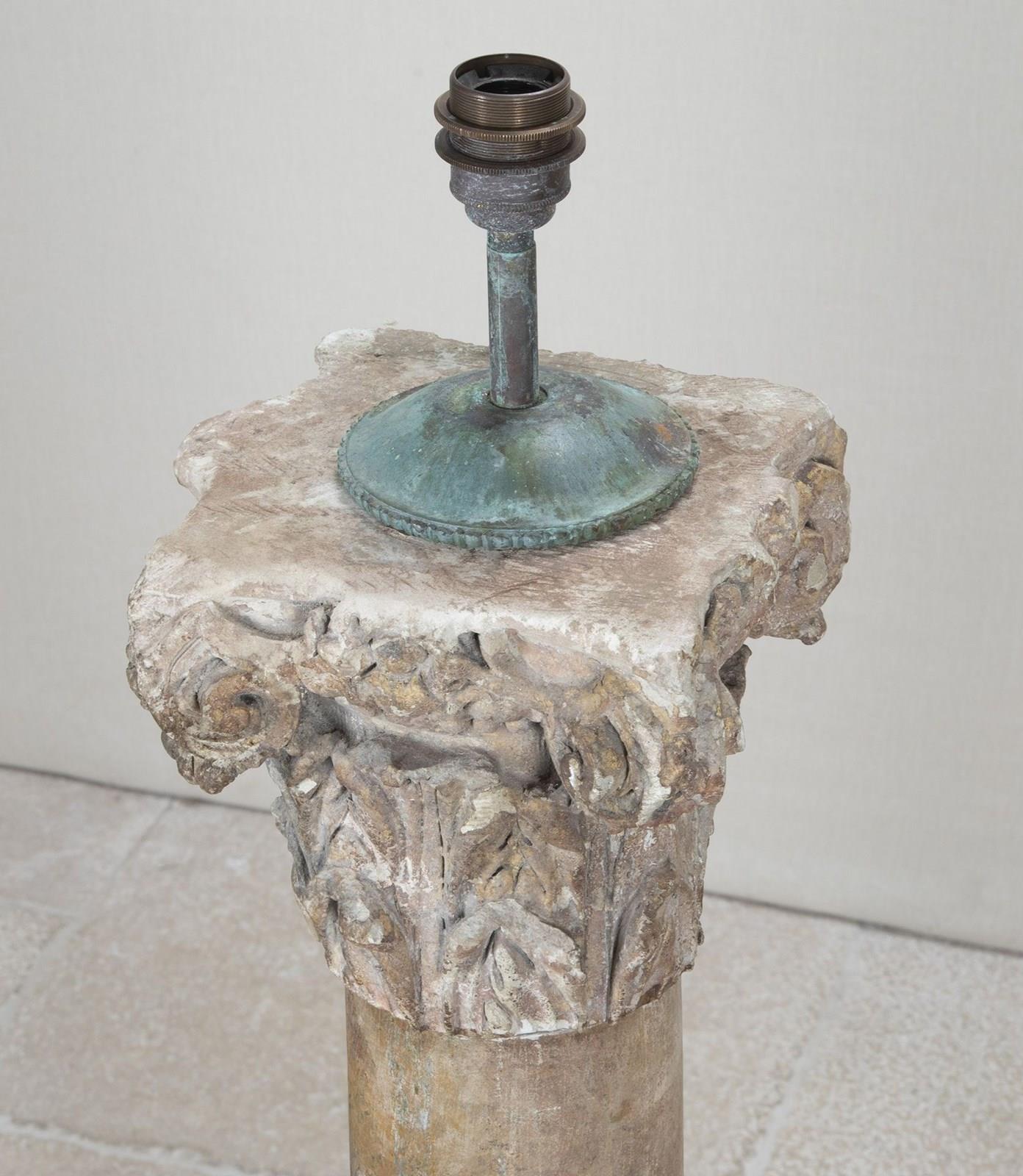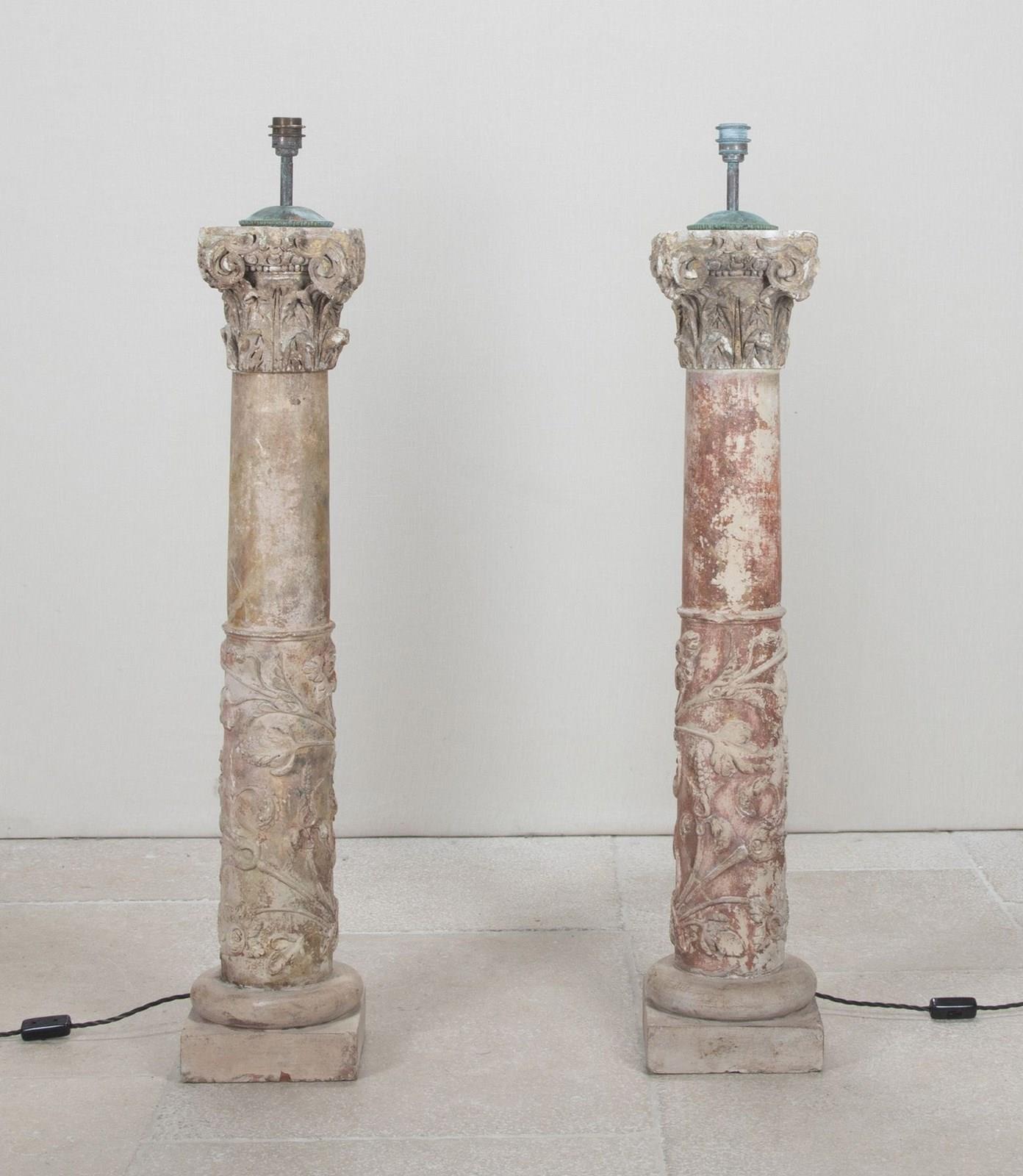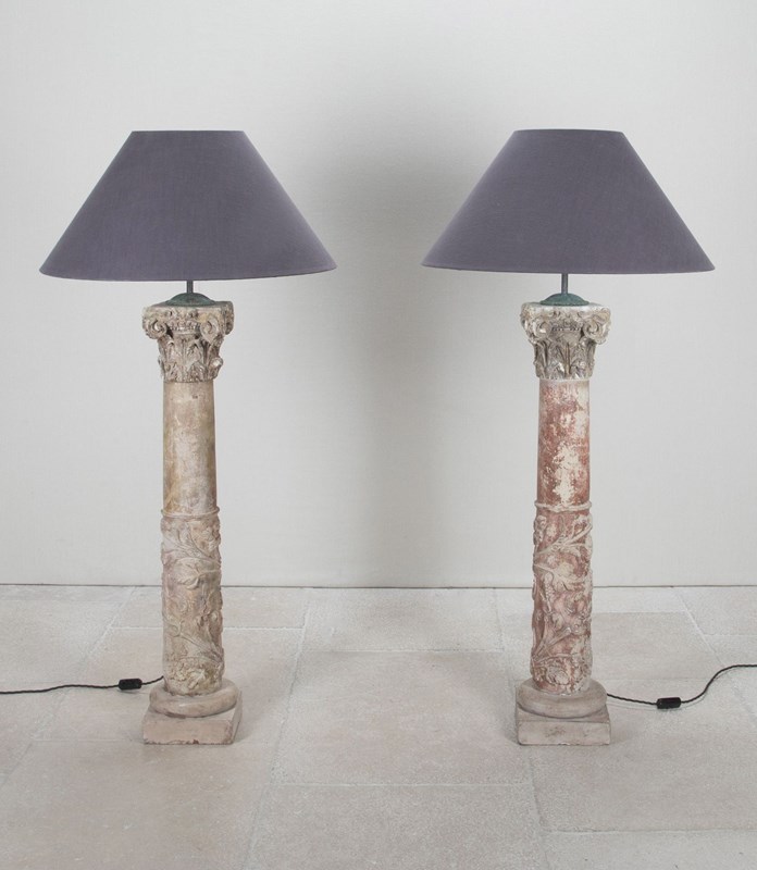 Pair of large late Renaissance period Italian stone columns converted into floor lamps.