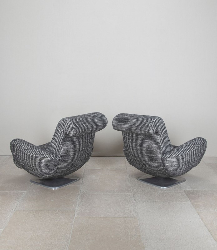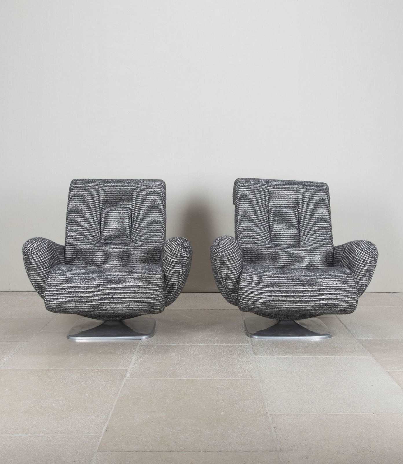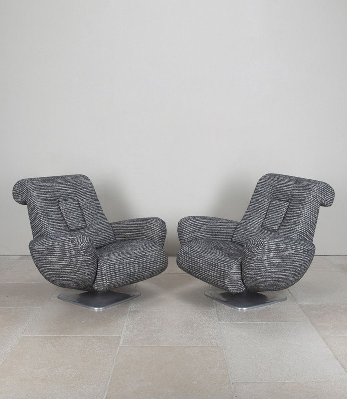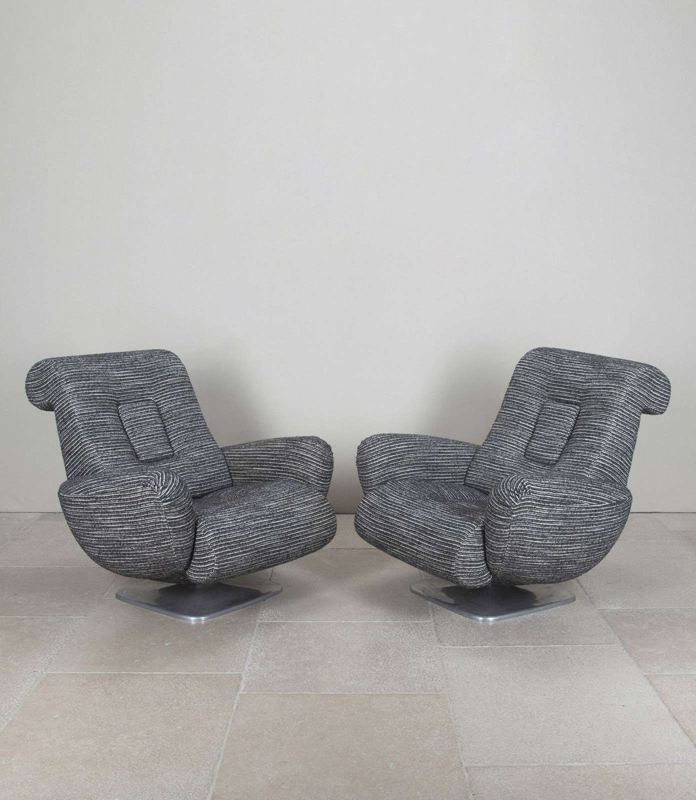 Pair of Mid-Century Italian comfortable futurist armchairs.