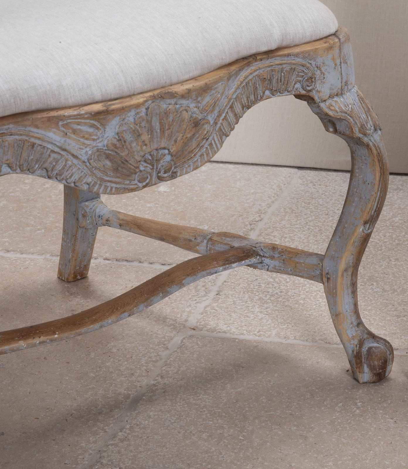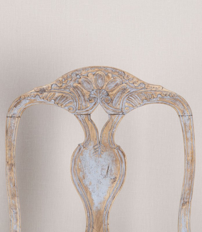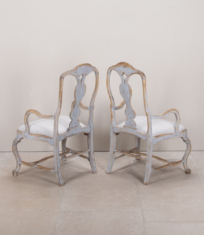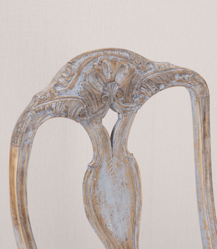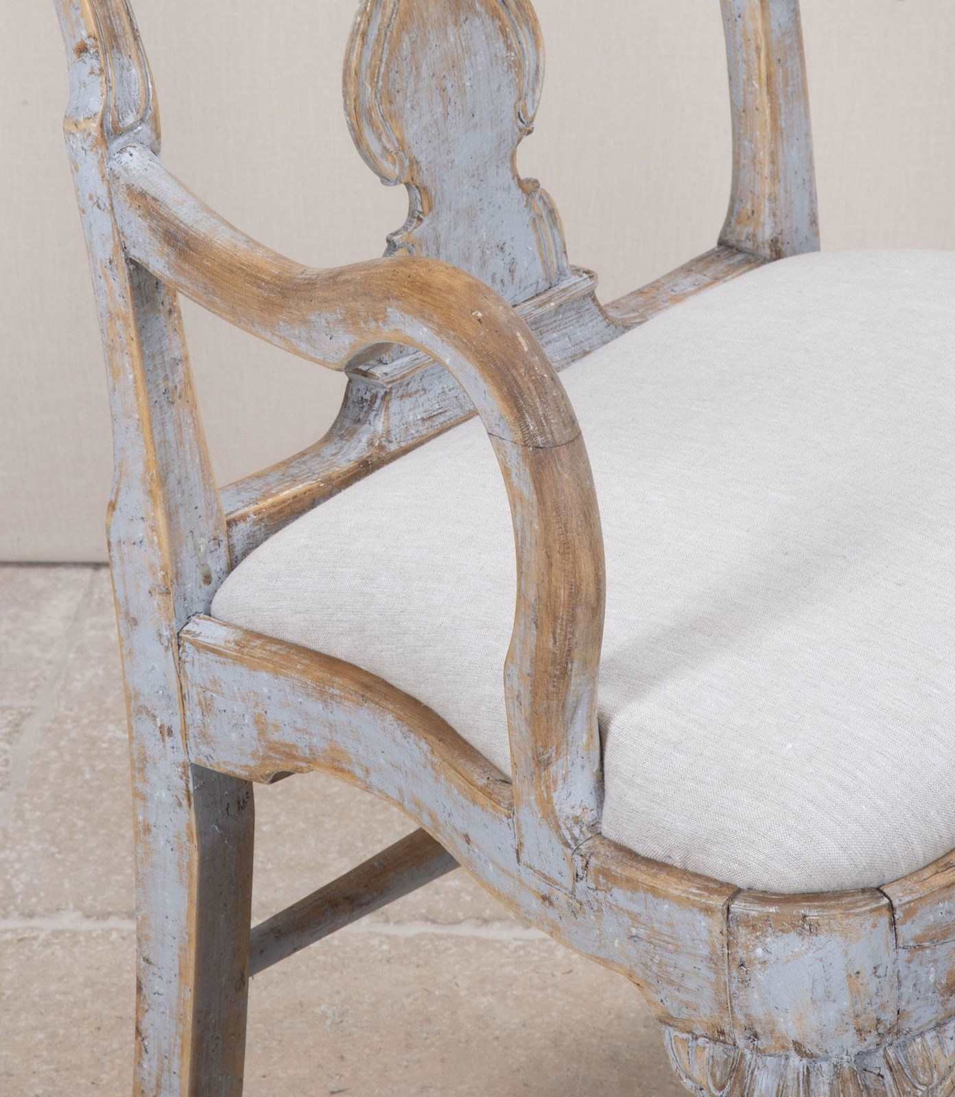 A fine pair of late 18th Century Swedish Lindome armchairs. Excellent carving and shape, in later blue paint. Circa 1770.