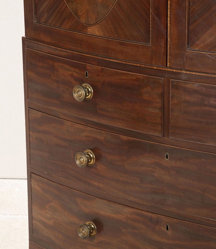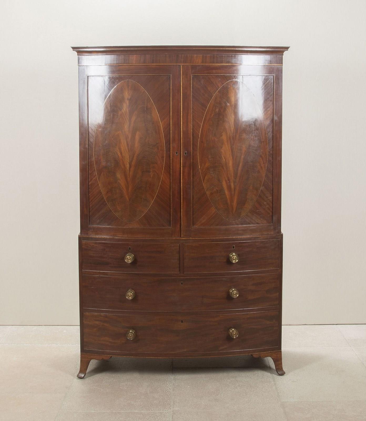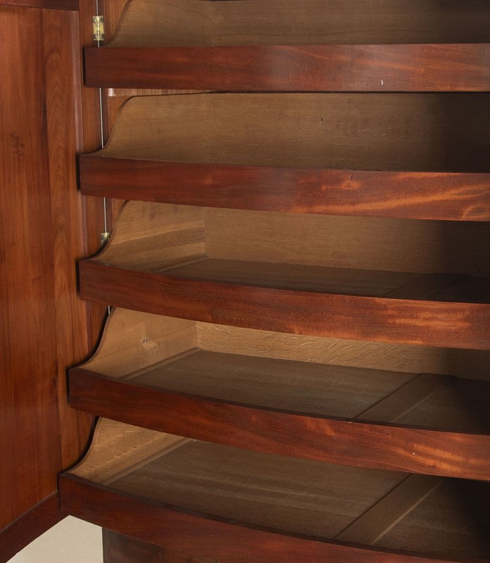 Regency mahogany linen press with original brass handles. With oak linen slides.