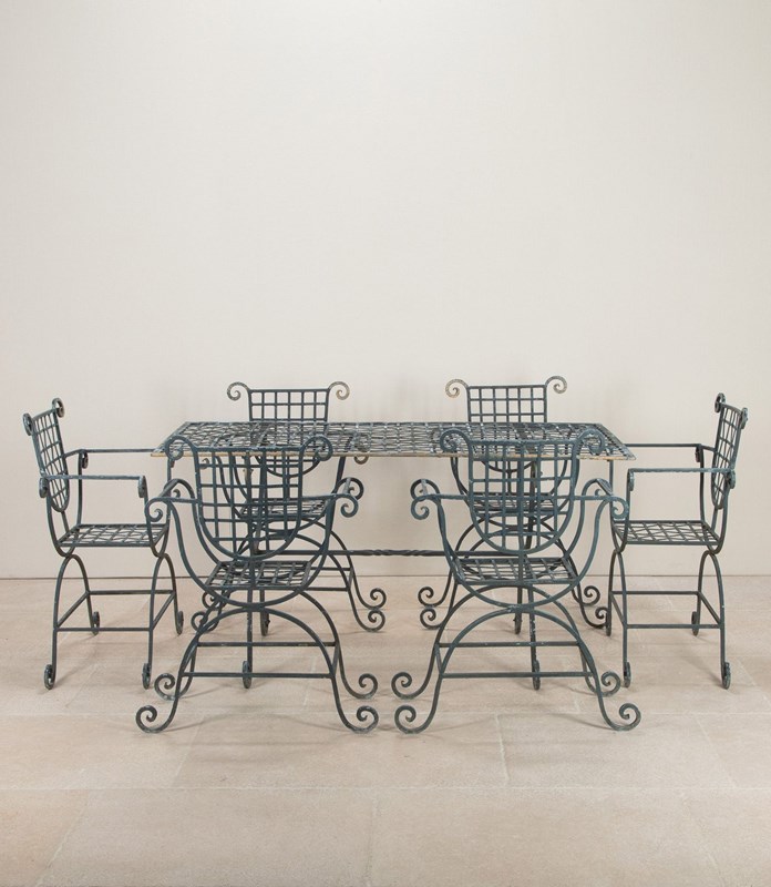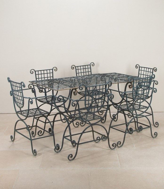 Set Of 20Th Century Handmade Iron Table And Six Chairs