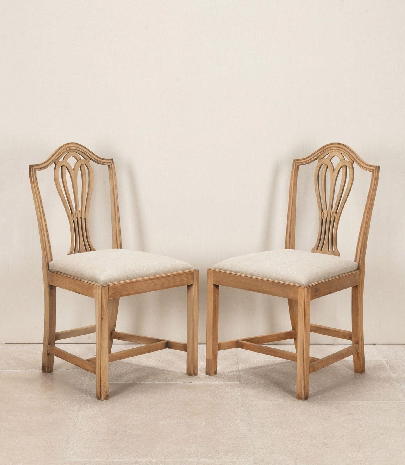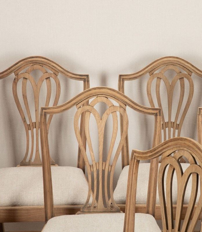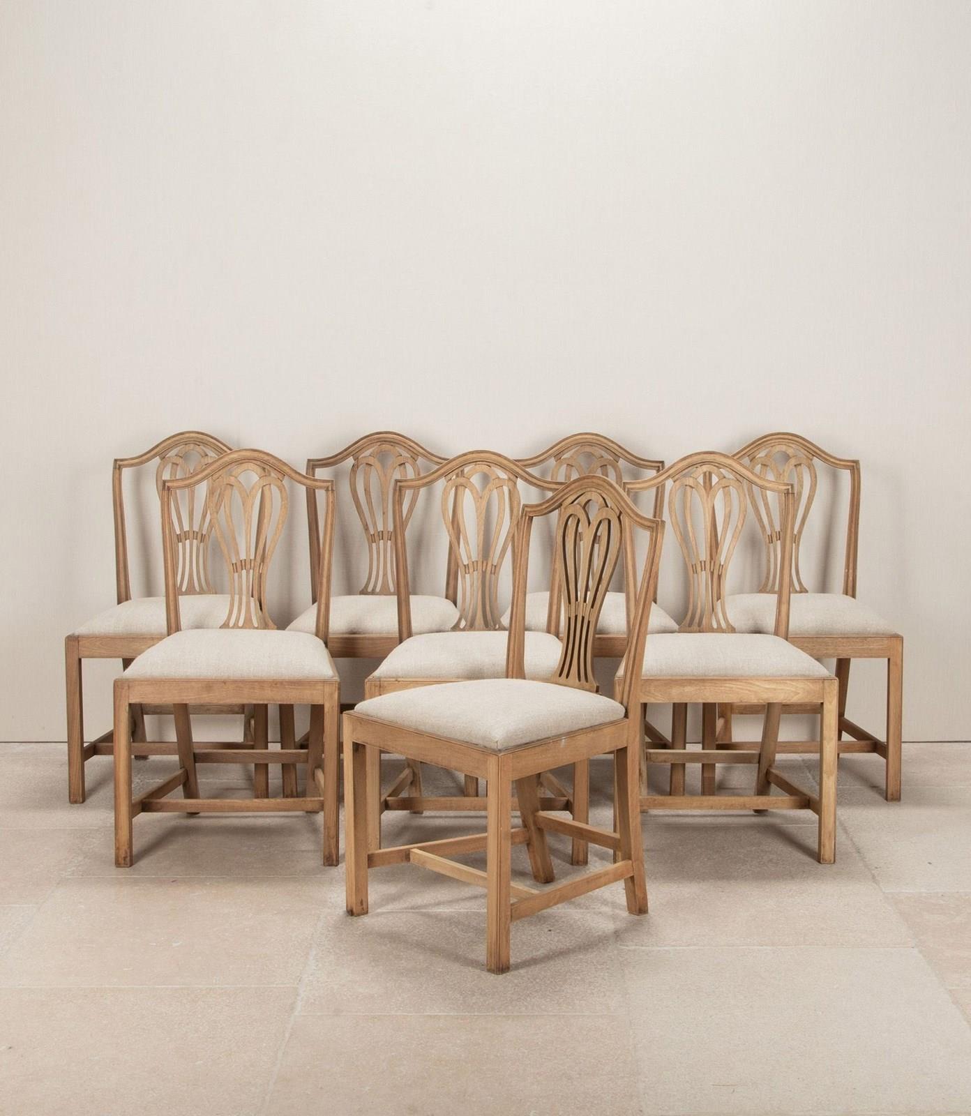 A beautiful set of eight early 19th Century bleached mahogany dining chairs.