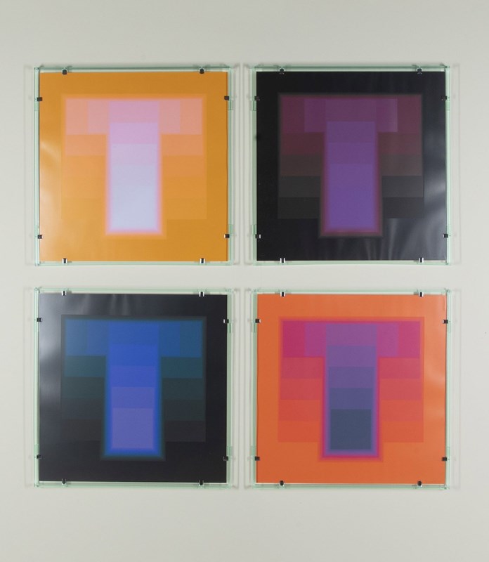 A collection of four original mid-20th Century shimmering op art screenprints from the series 'Colorsounds' by Karl Gerstner. Swiss artist and graphic designer, 1937-2017.