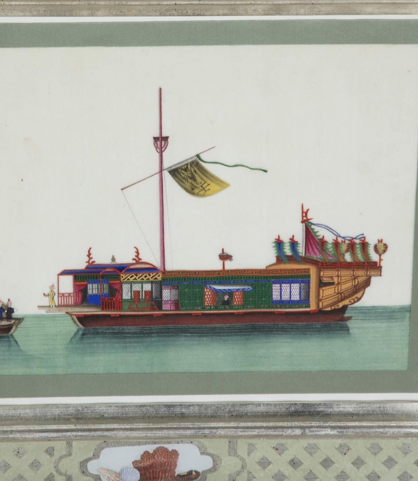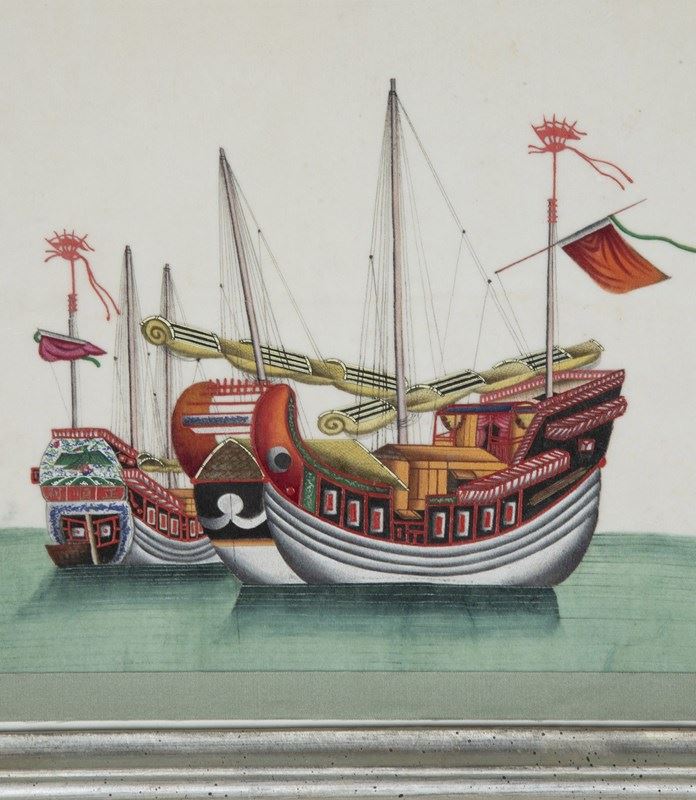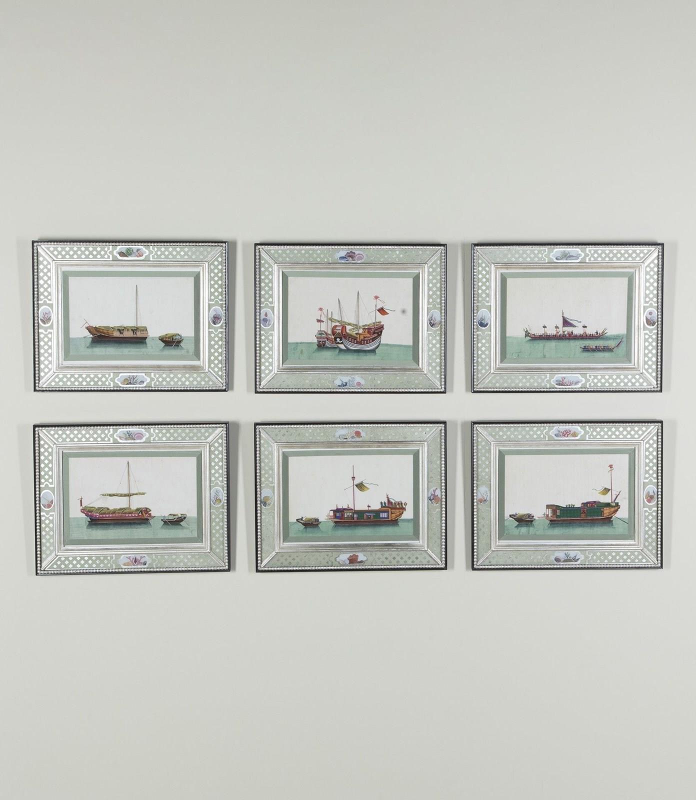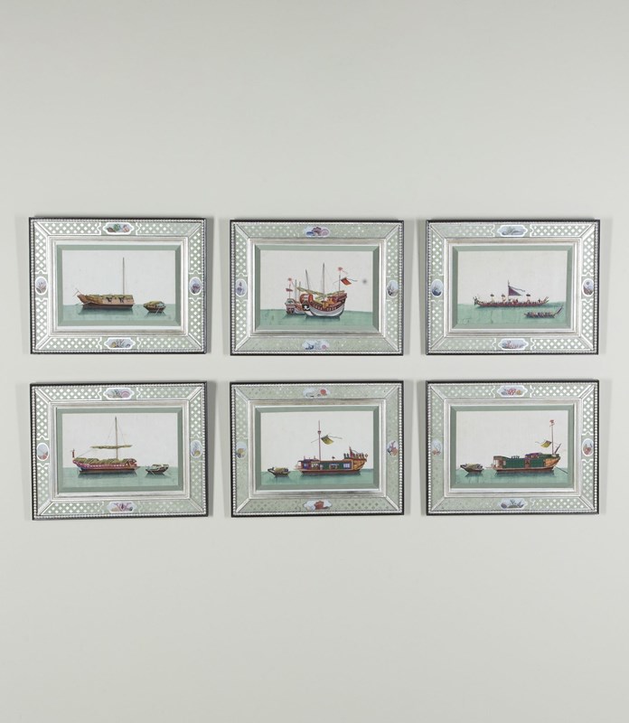 A set of six original 19th Century Chinese watercolour paintings on rice paper of junks and sampans of Canton harbour.