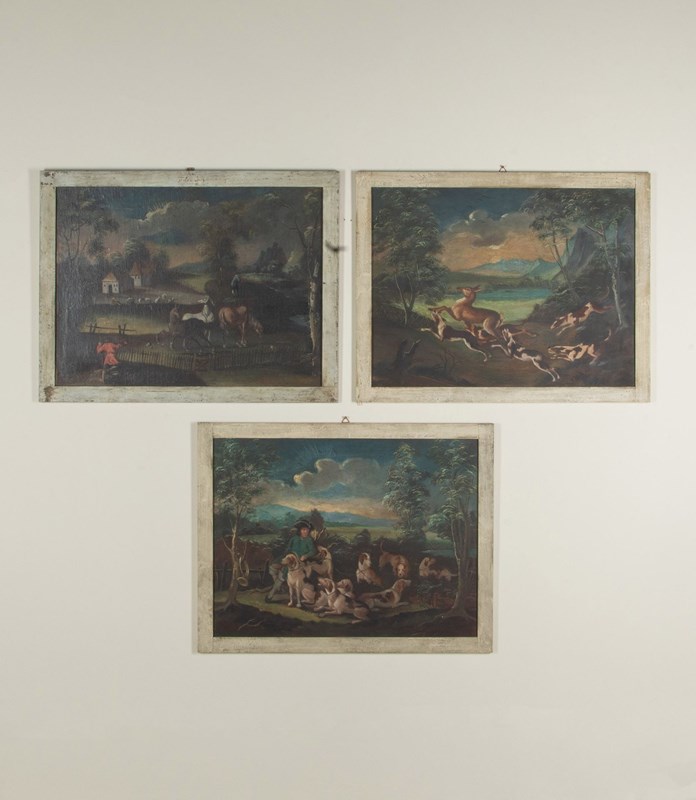 Set Of Three Late 18Th Century Dutch Oil On Canvas Of Rural Scenes