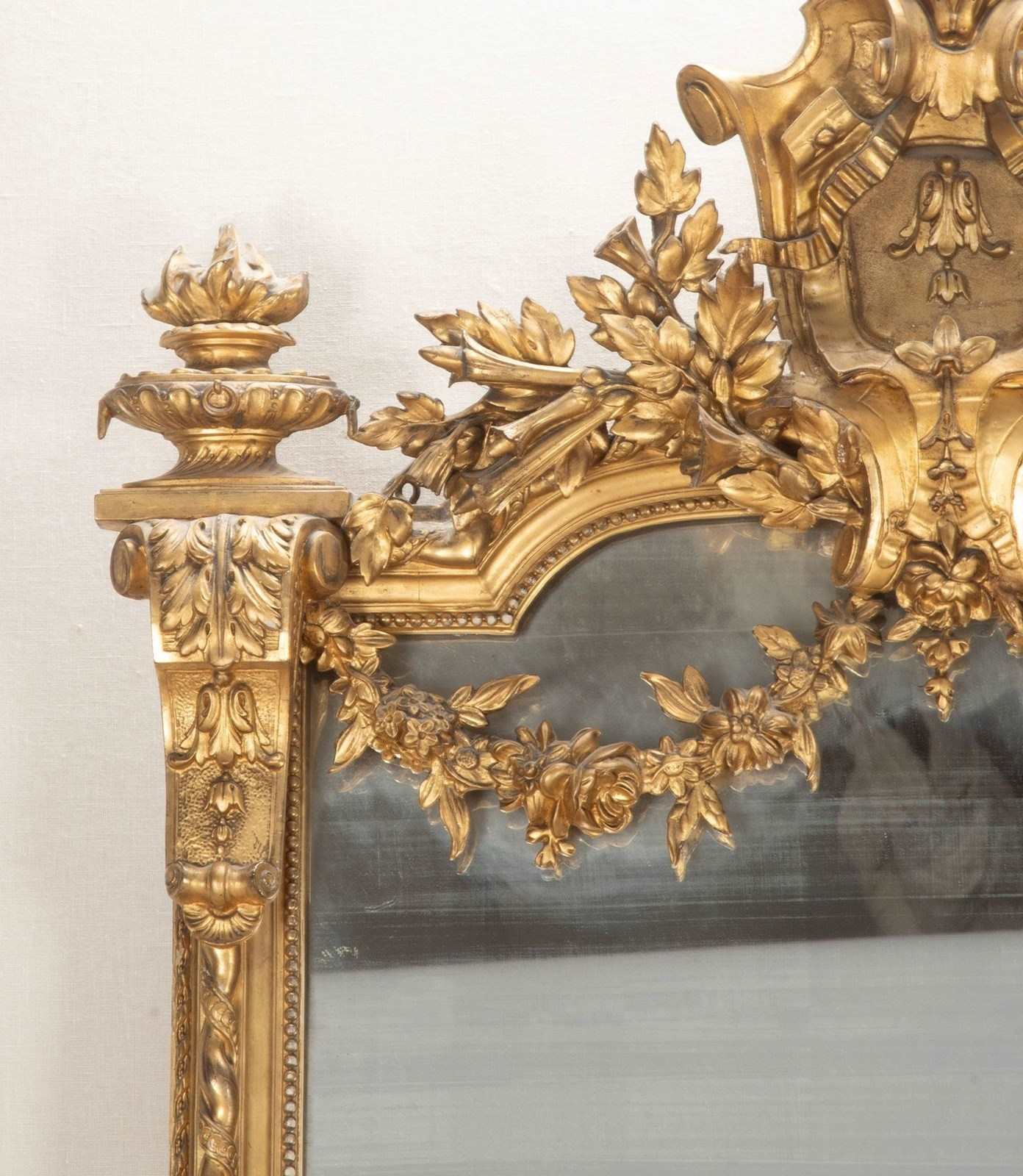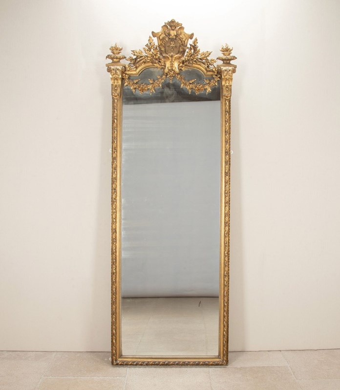 Tall 19Th Century English Crested Gilt Pier Mirror