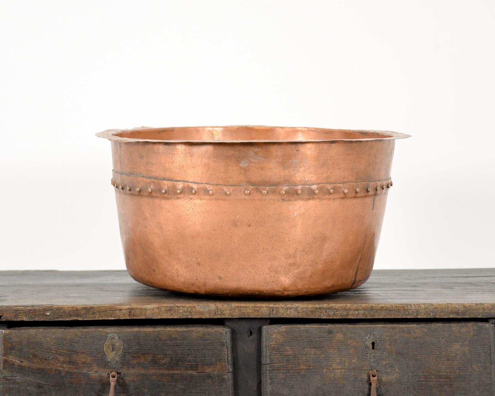 French copper planter with rivet detail. 19th century, lovely piece to use to plant indoors or outdoors.