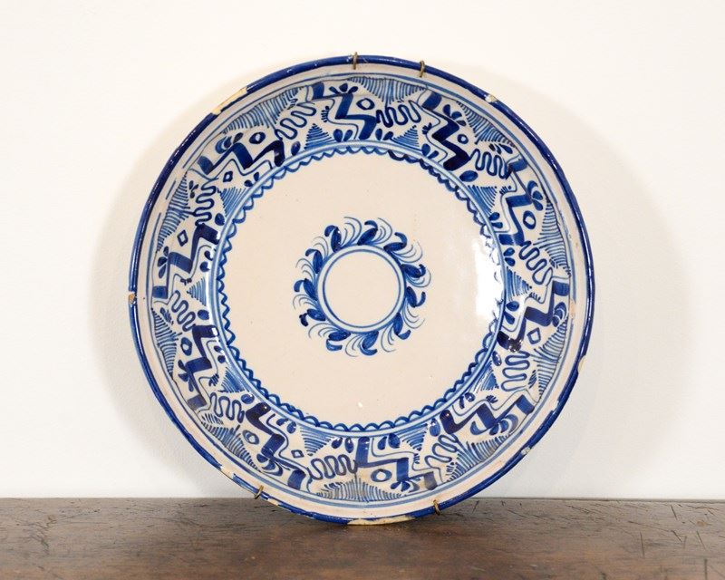 Spanish Blue And White Glazed Plate 3