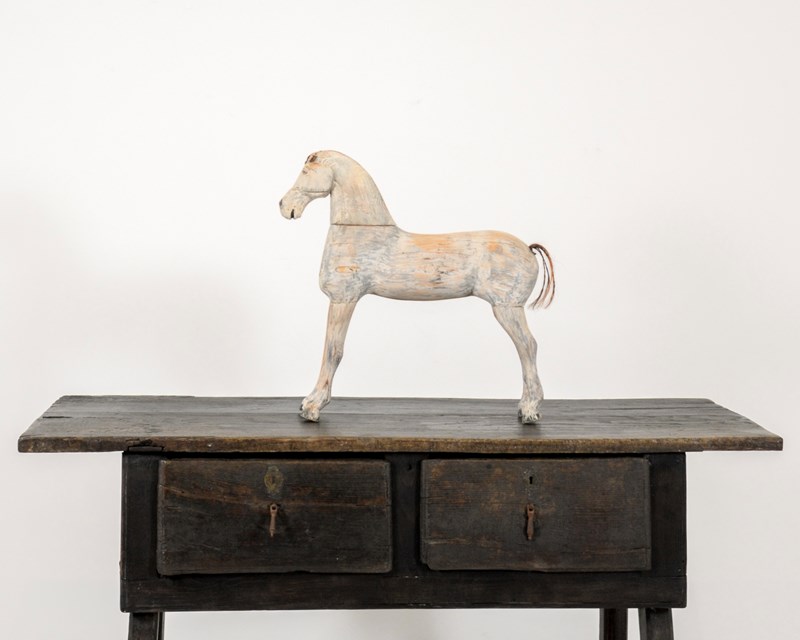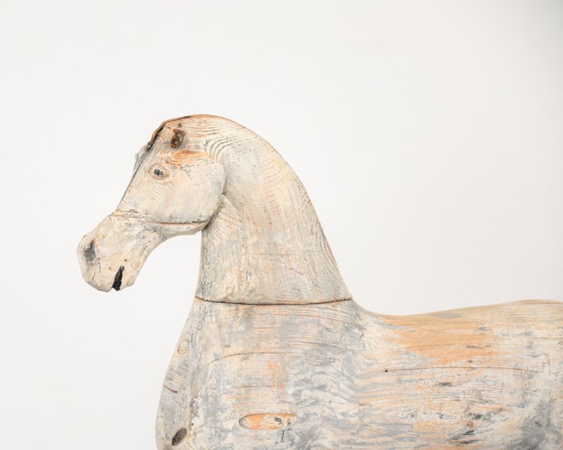 19th century Swedish wooden decorative horse. Very attractive decorative piece of Swedish carving. Ears missing but this doesn't take away from the elegant form.