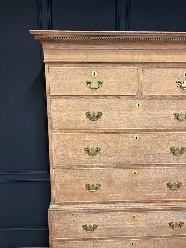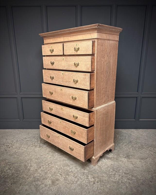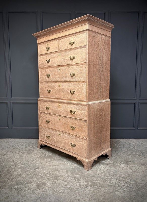 A handsome 18th-century bleached oak chest on chest, dating to around 1770.