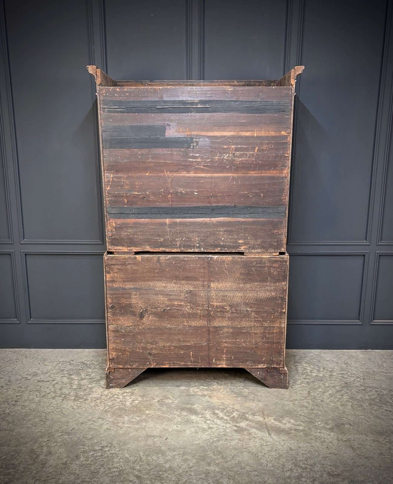 Constructed in two sections for ease of transport and featuring a classic two short over six long drawer configuration. The drawers retain their original brass locks, and are finished with fine cockbeaded fronts.