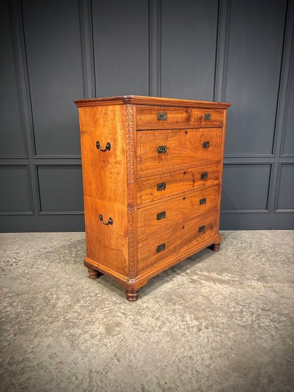 19Th Century Camphor Wood Military Campaign Secretaire Chest